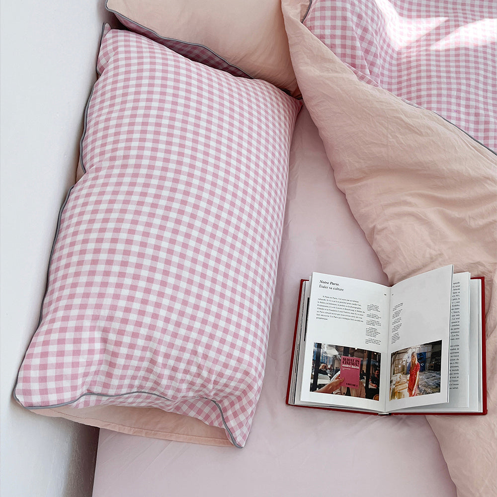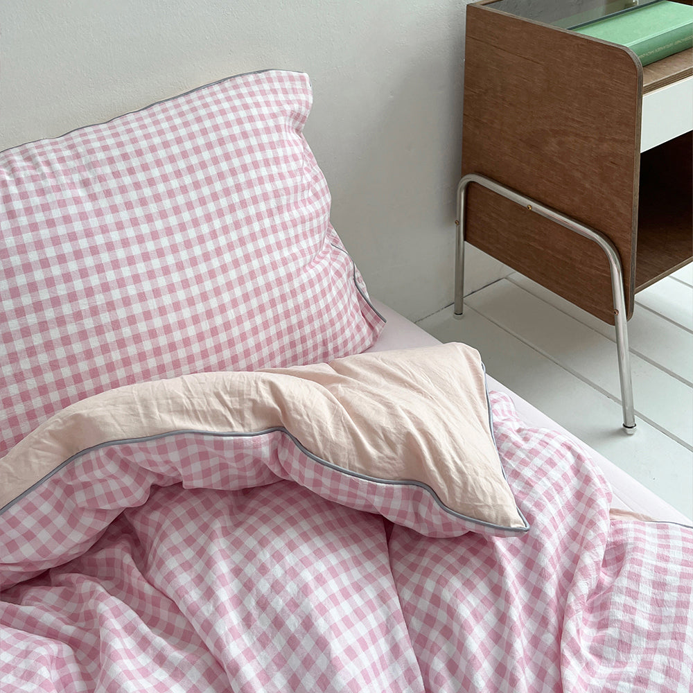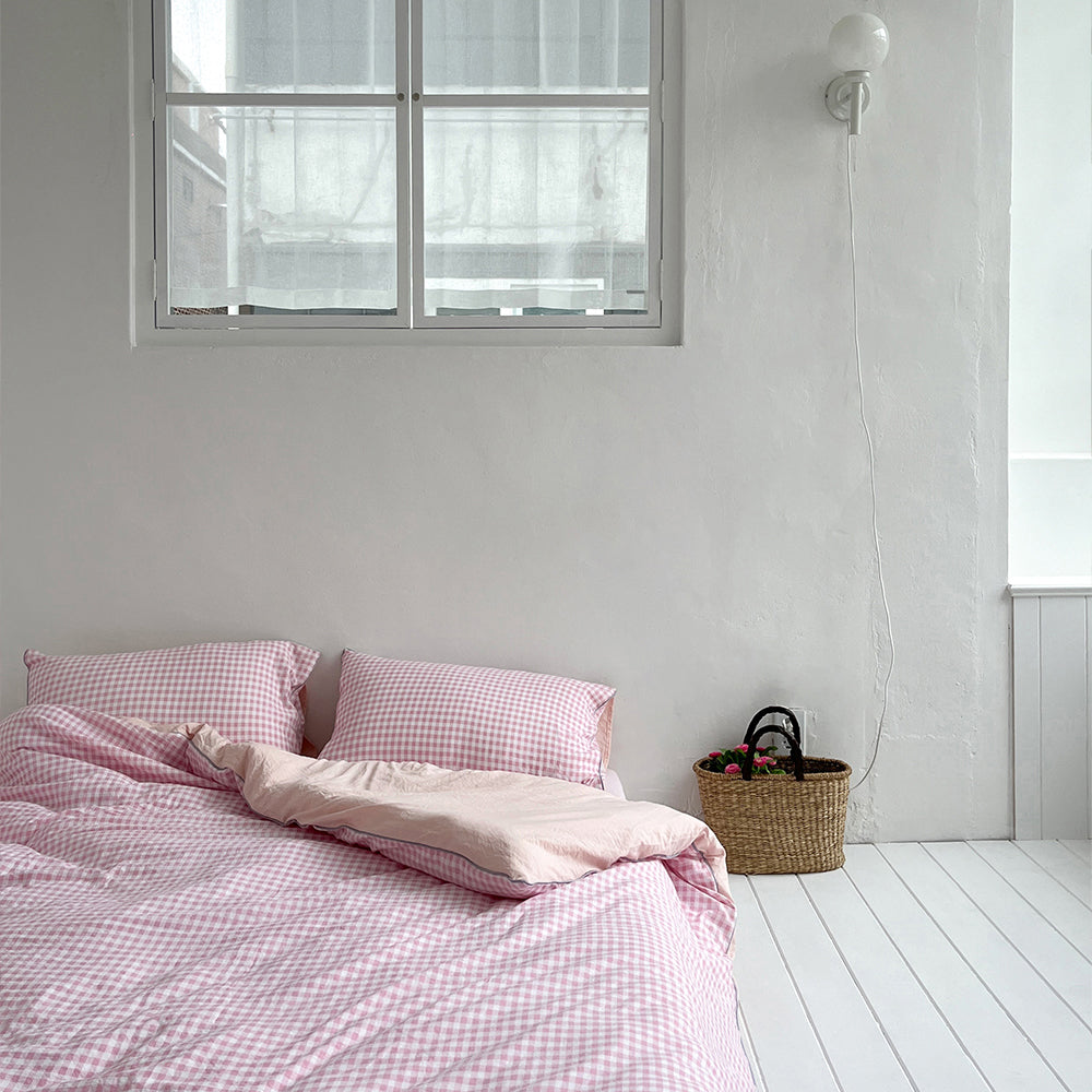 ふわふわ軽くて涼しい肌触りの寝具です。体を楽に包みこみ、爽やかな気持ちをたっぷり感じることができます。華やかでピンクカラーの前面とピッチカラーの裏面が釣り合って明るい雰囲気を出します。