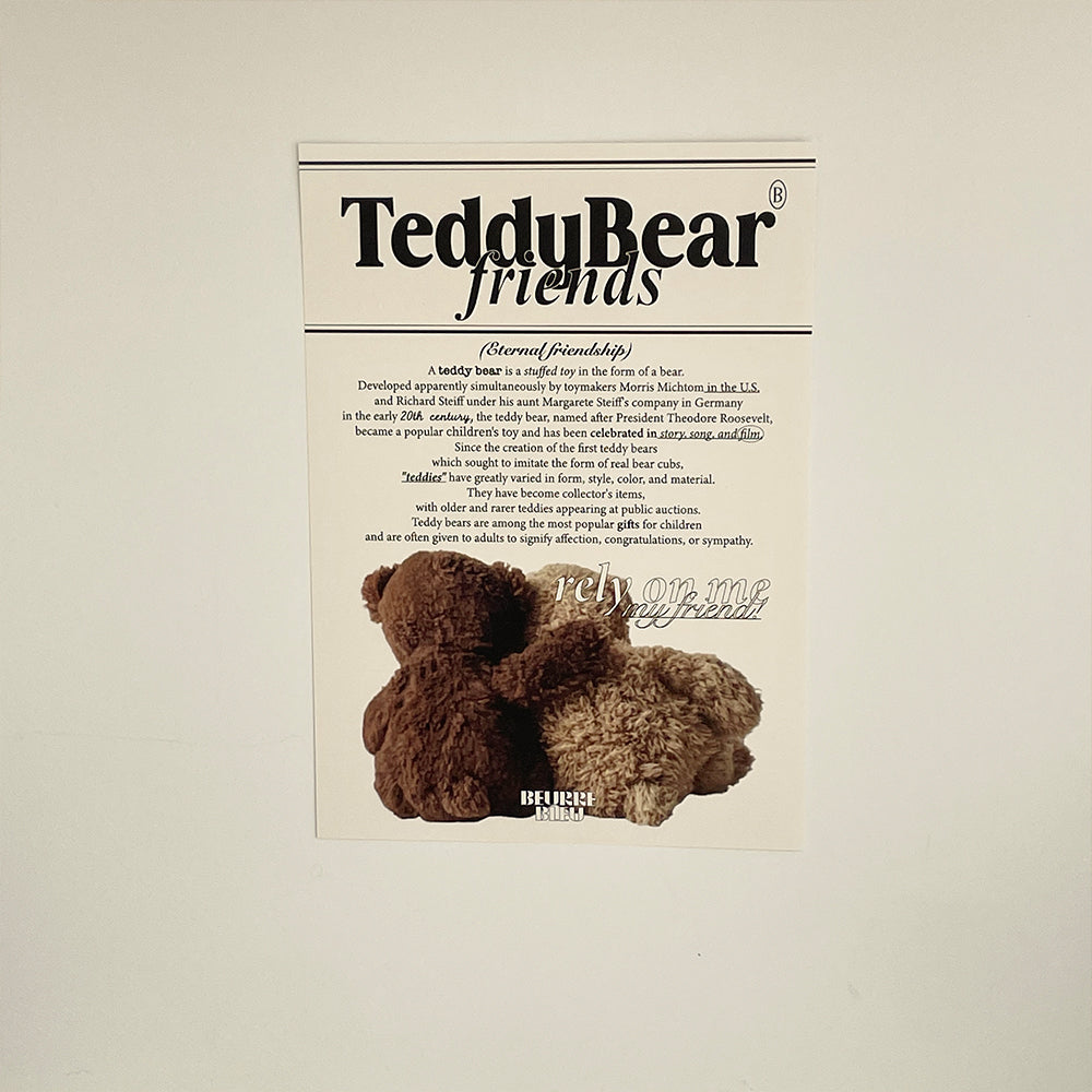 ふわふわなテディベアの仲良しな後ろ姿が可愛いポスターです。温かくて愛らしいテディベアのポスターが空間をより一層心地よくします。