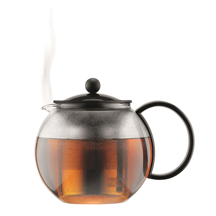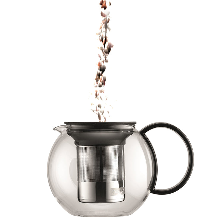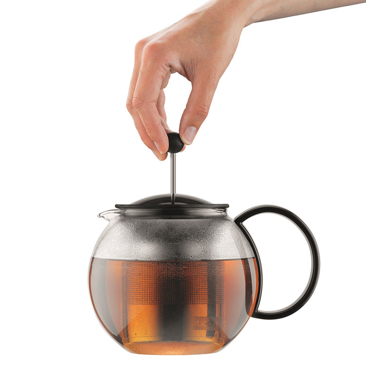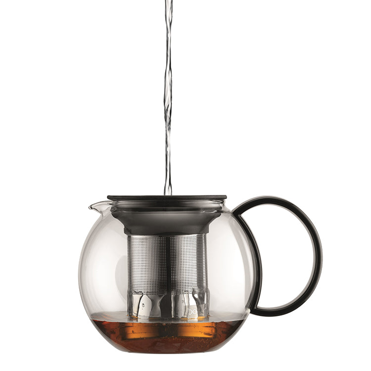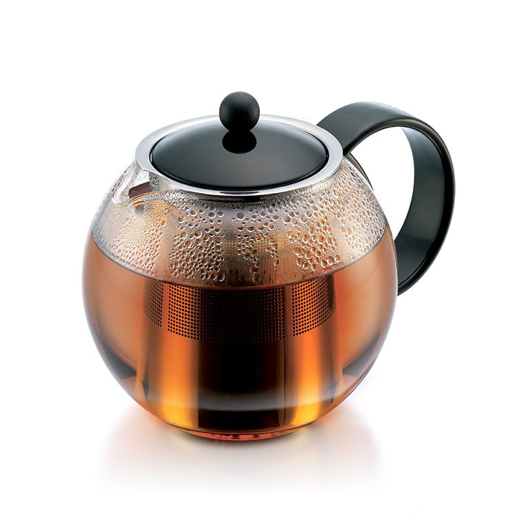 茶葉本来の瑞々しい味わいを引き出すフレンチプレスを採用した画期的なガラス製ティーポットです。美しさだけでなく実用性も備えているので、お茶好きの方におすすめです。ボダムは、1944年創業、北欧デンマーク生まれのキッチンウエアブランド。デザインだけでなく実用性に優れた商品は、世界55か国にまで広がり毎日の食卓で料理や素材の美味しさを引き立てています。耐熱性の高い透明なホウケイ酸ガラス製で、お茶がゆっくりと抽出されていく様子をはっきりと見ることができます。茶漉しとリッドには、耐久性のあるステンレス製を使用。茶漉しの縁はシリコン製で、ティーポットにしっかりと固定でき、ガタつくことなくスムーズに注ぐことができます。縁が熱くならないため、取り外しもラクに。