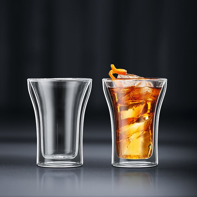 洗練された曲線が手にしっくりと馴染み、飲みものがグラスの中に浮かんでいるように見えるダブルウォールデザイン。実用性とデザイン性を見事に兼ね備えたグラスです。ボダムは、1944年創業、北欧デンマーク生まれのキッチンウエアブランド。デザインだけでなく実用性に優れた商品は、世界55か国にまで広がり毎日の食卓で料理や素材の美味しさを引き立てています。耐熱性の高いホウケイ酸ガラスを使い、熟練した職人がひとつずつ吹きガラス製法で製作。ボディが二重構造になっており、温かい飲みものも冷たい飲みものも理想的な温度が長く保たれるようこだわりました。底面のシリコン製ベントがグラスの外側の温度を調整し、厄介な結露を防ぎます。熱い飲みものが入ったグラスも持ちやすい工夫です。