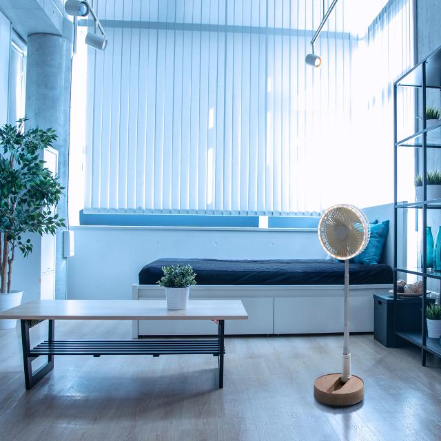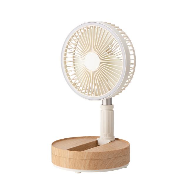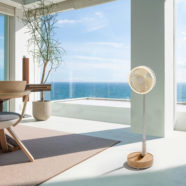コードレスでどこでも自由に持ち運ぶことができる、伸縮自在の充電式マルチフォールディングファンです。扇風機とLEDライトが融合して、卓上デスクファンとしても、床置きのリビングファンとしても使用できます。
