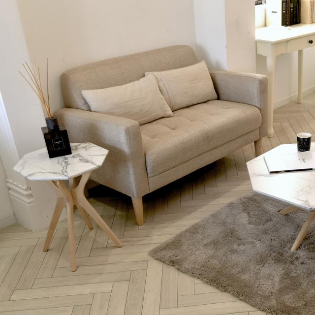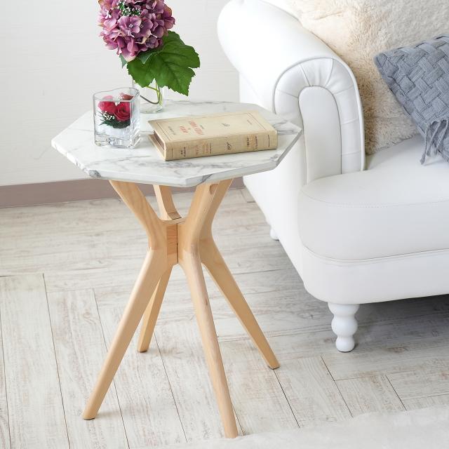 まるで本物のさながらの大理石柄が美しいサイドテーブルです。ラグジュアリーな大理石柄の天板と温もりある天然の木脚の組み合わせが、おしゃれで洗練された雰囲気を演出します。