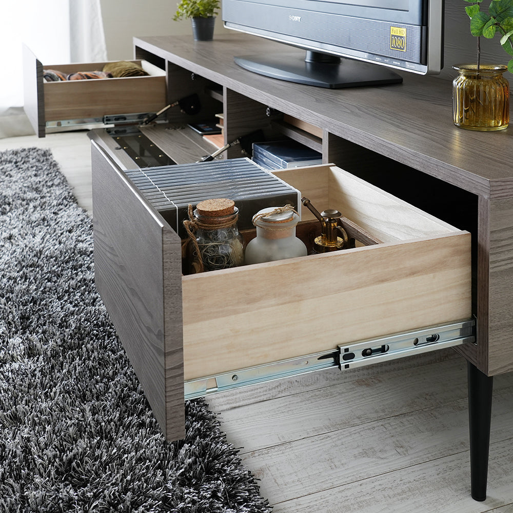 使いやすさとひとつひとつの工程を伝統の技術を用いて丁寧に仕上げた、こだわりの日本製テレビボードです。シンプルなボックス型の本体に、モダンな印象を与えるテーパードレッグを採用しています。中央にはアジャスター付きの支えが付いており、テレビのグラつきを抑える安心設計です。