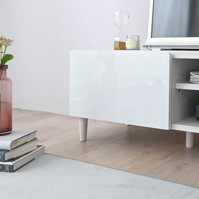 表からねじ穴が見えないフラットで美しいデザインのローボードです。飾りすぎないシンプルなデザインはリビングでの安らぎを与え、美しい艶の鏡面仕上げがお部屋の雰囲気を高めてくれます。また、鏡面仕上げのカラーは家電との相性も良く、無機質になりがちなAV機器まわりをお気に入りのスペースに変えてくれます。