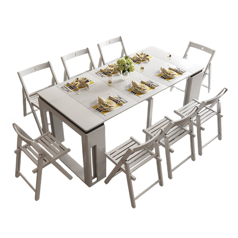 この伸縮式ダイニングテーブルは、小さなスペースでも大人数に対応できる多機能家具です。サイズ調整が可能で、最大10人までの食事に対応。省スペース設計で、収納時にはわずか0.38平方メートルのスペースしか取りません。高耐久性のテーブルトップは10年間の使用に耐え、環境に優しい素材を使用しています。安定した設計で安全性も高く、家族や子供に安心です。どんな家庭にもぴったりの選択です。