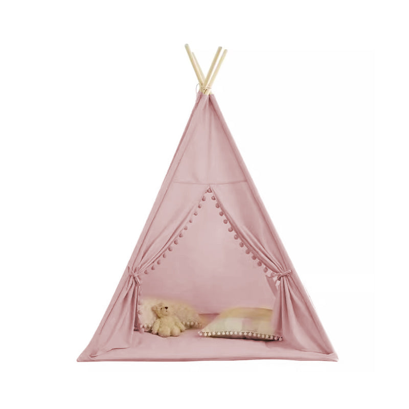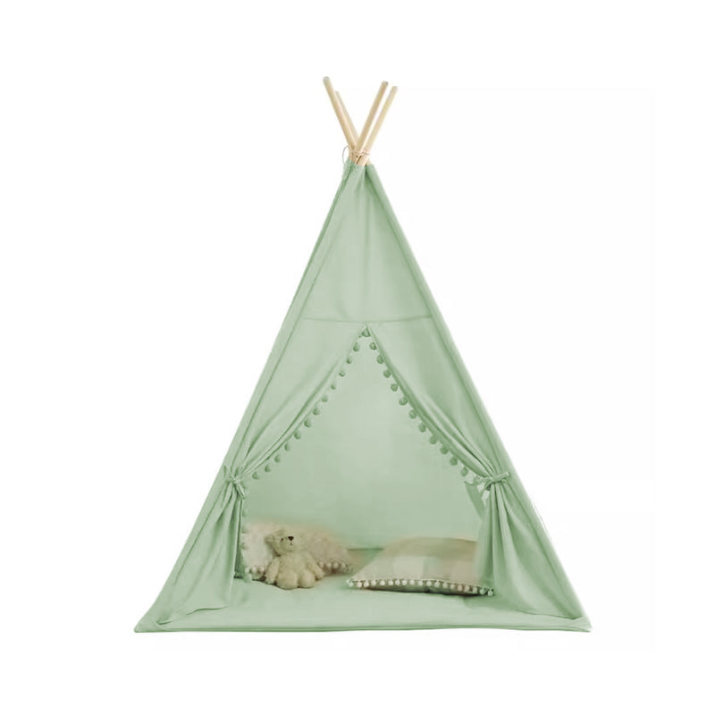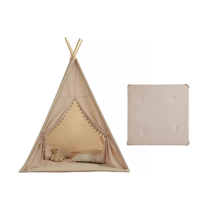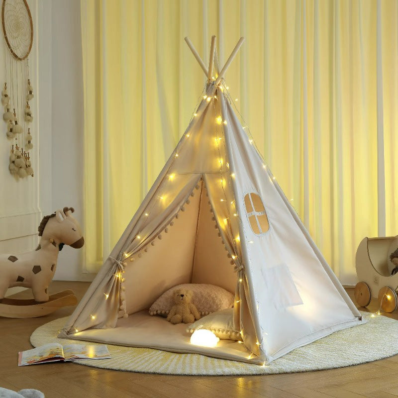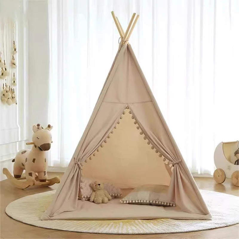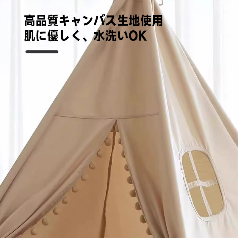 インディアンキッズテントは、子供たちに特別な空間を提供するシンプルでおしゃれなデザインのテントです。カーキ、ピンク、ライトグリーンの3色展開で、どんなキッズルームにもぴったり。キャンバス生地とニュージーランド産パイン材を使用し、耐久性が高く安心して使用できます。ふわふわのポンポンと小窓付きで通気性も良好。組み立てが簡単で、広々としたスペースを提供。テント内側には収納ポケットがあり、お気に入りのぬいぐるみや小物を収納可能。子供たちの想像力をかき立てる秘密基地として、ワクワクする遊びの時間を提供します。