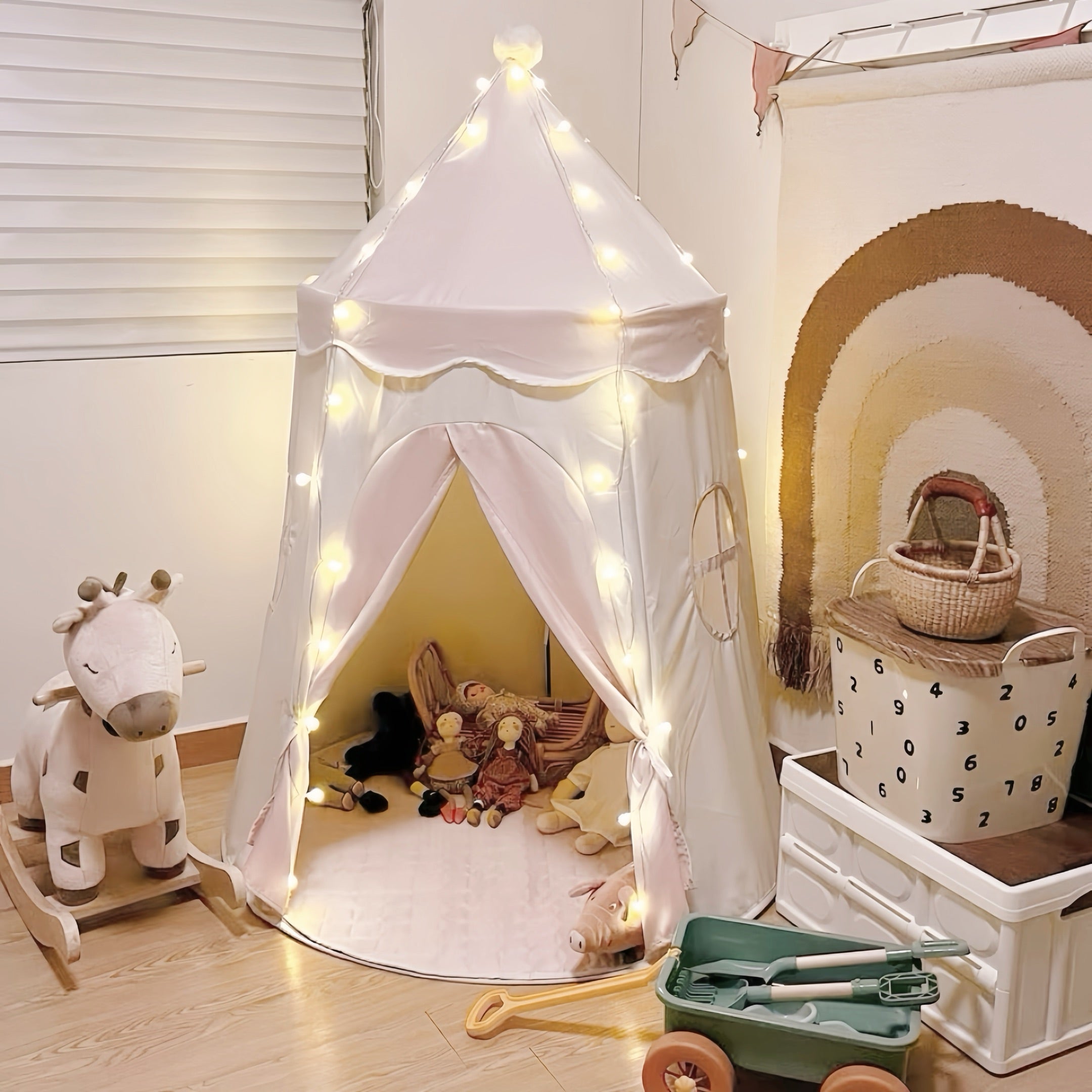お城風キッズテントは、お子様の遊び心をくすぐる素敵なアイテムです。お城をイメージしたデザインで、ファンタジーの世界に飛び込めます。ピンクとブルーの2色展開で、柔らかい色合いが魅力です。ファイバー製ポールを使用し、しっかりとした構造で安心。通気性が良く、さらさらとした肌触りのソフトな生地を採用。110cm x 110cm x 155cmの広さで、1歳から9歳までのお子様に最適です。中綿入りの滑り止めマットが付いており、収納バッグ付きでコンパクトに収納可能。明るい日中はもちろん、夜にはライトアップして幻想的な雰囲気を楽しめます。お子様の創造力を育むだけでなく、安心して遊べる空間を提供します。