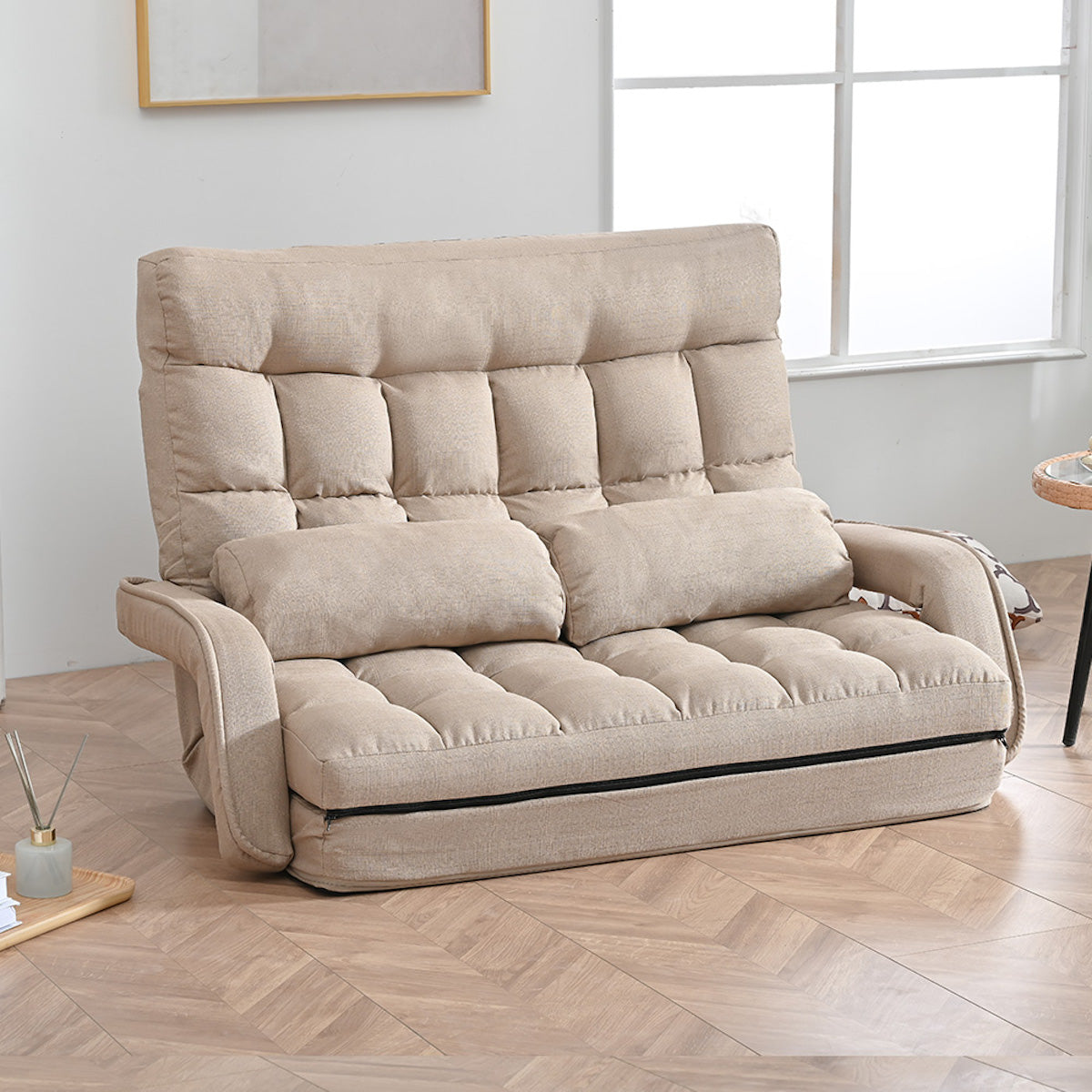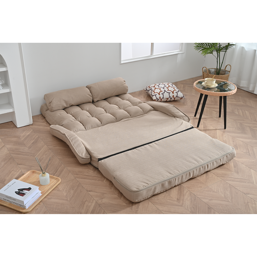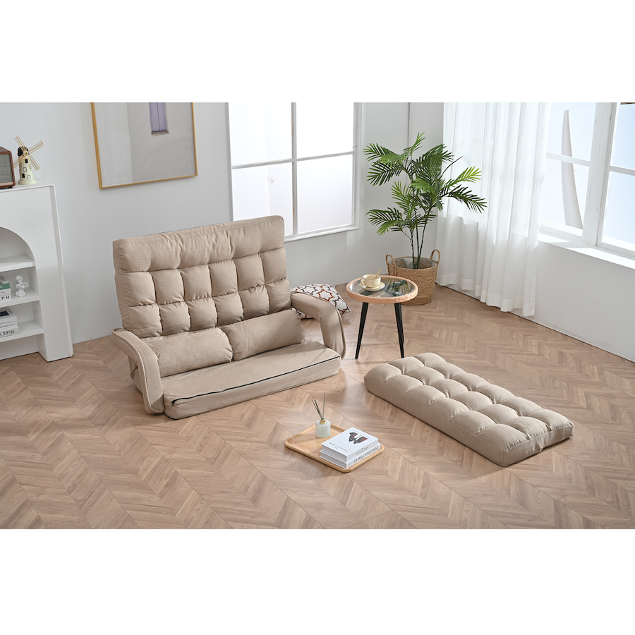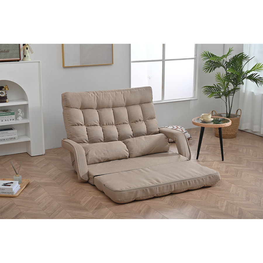 肘付き折りたたみ2人掛けソファは、4WAYデザインでソファ、カウチ、ロングクッション、ソファベッドとして多機能に活用可能。高品質な座り心地を提供し、厚さ約20cmの座面が体圧を分散。通気性の良いファブリック生地で季節を問わず快適。簡単に折りたたみ収納でき、和室やリビング、ベランダなど様々なシーンで利用可能。5色のカラーバリエーションから選べ、どんなお部屋にもフィットします。