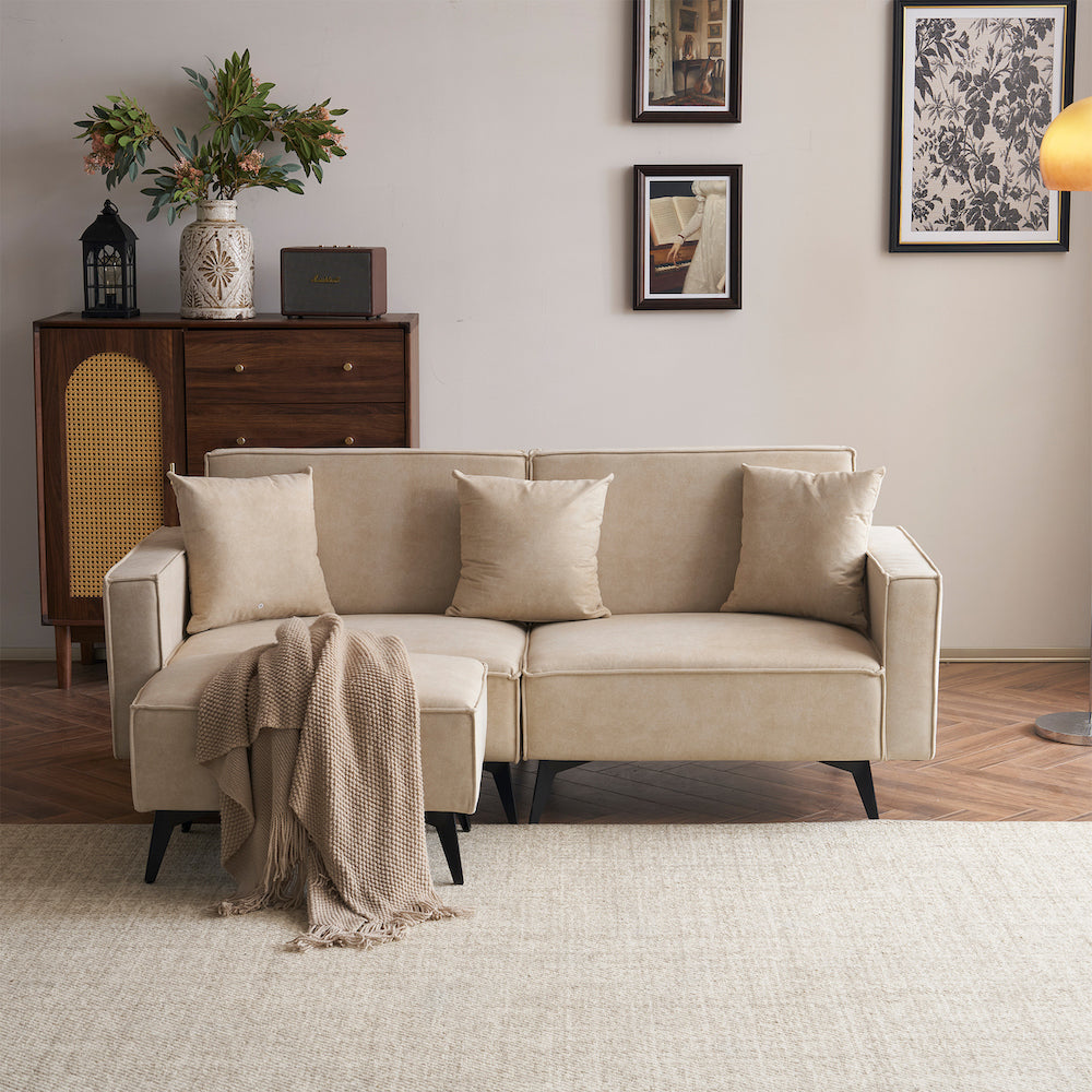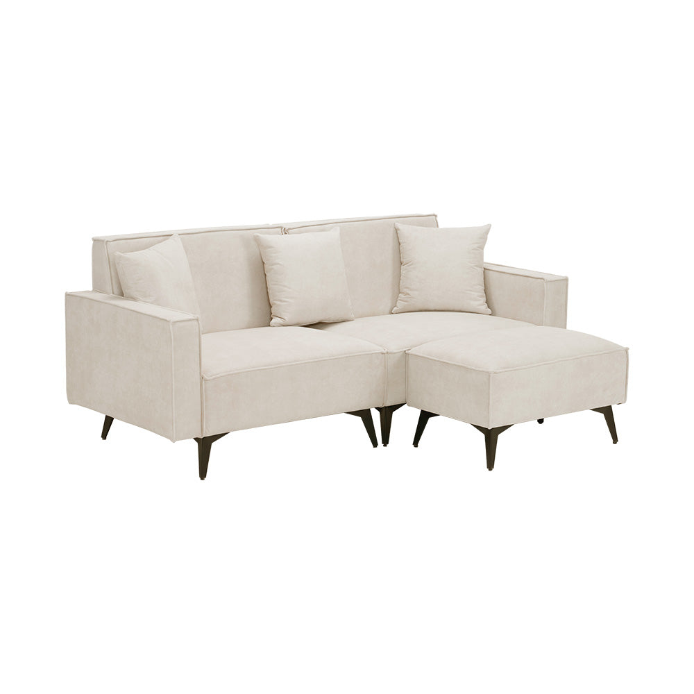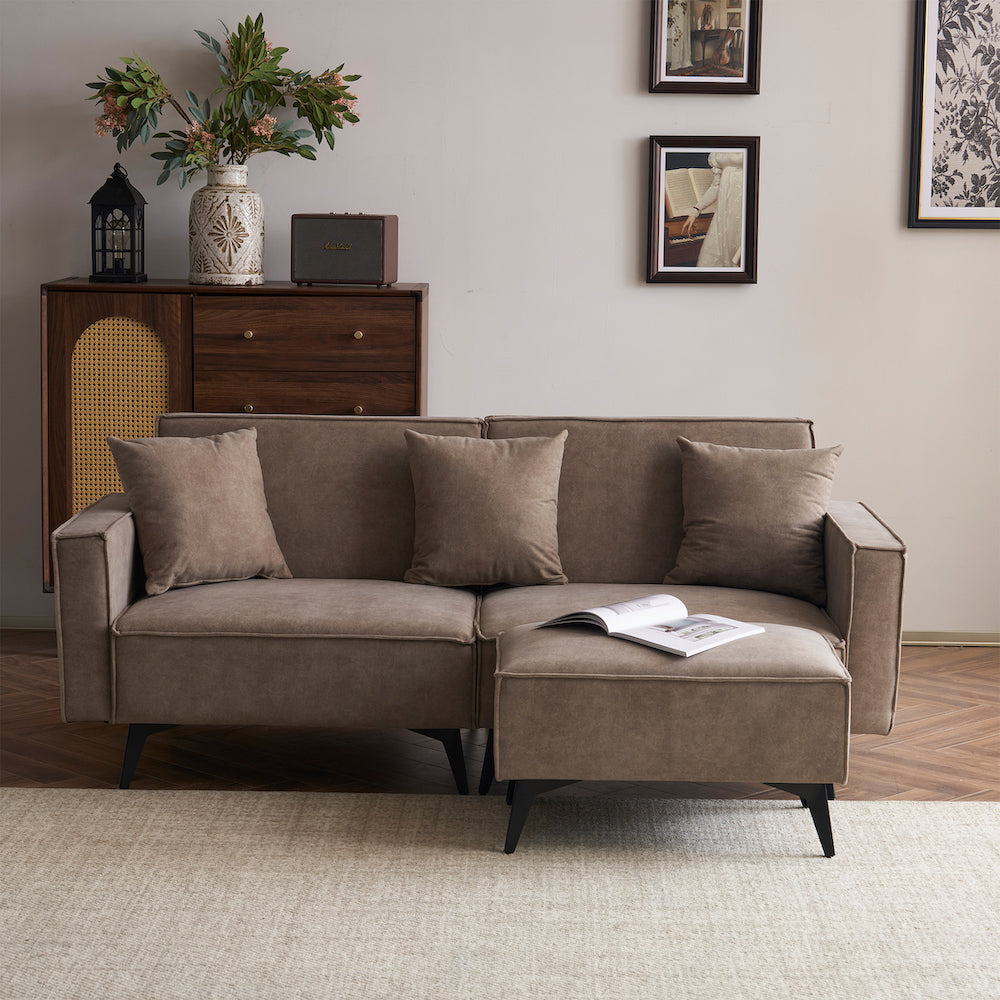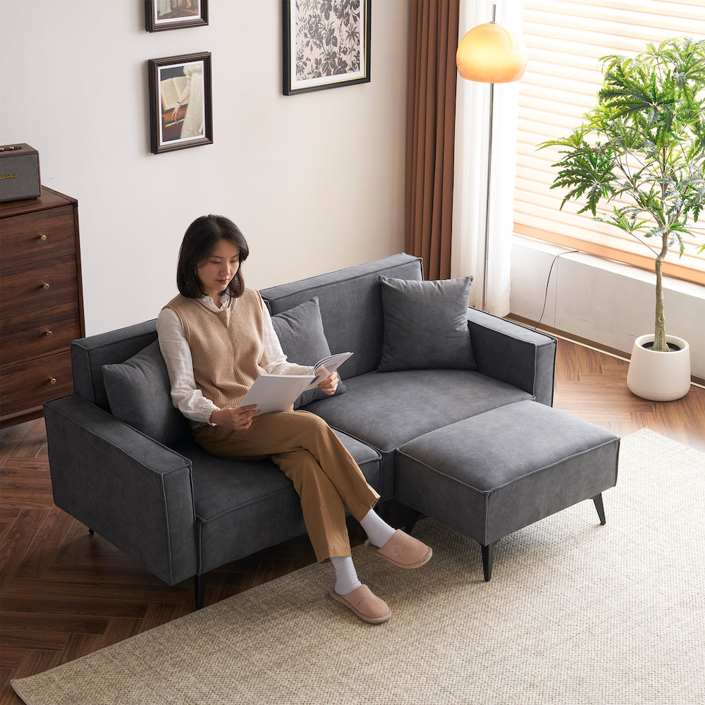 オットマン付L字型コーナーソファは、コンパクトながらも快適なリラックスタイムを提供します。限られたスペースやワンルームに最適で、一人暮らしや小さな家族におすすめです。多機能オットマン、自由なレイアウト、広々とした座面、快適なアームレスト、耐久性のある素材、ポケットコイルクッション、洗濯可能なカバー、スチール製レッグ、高い耐荷重設計など、様々な特長を備えています。どんなインテリアにもマッチし、スタイルや用途に合わせて自由にアレンジ可能です。