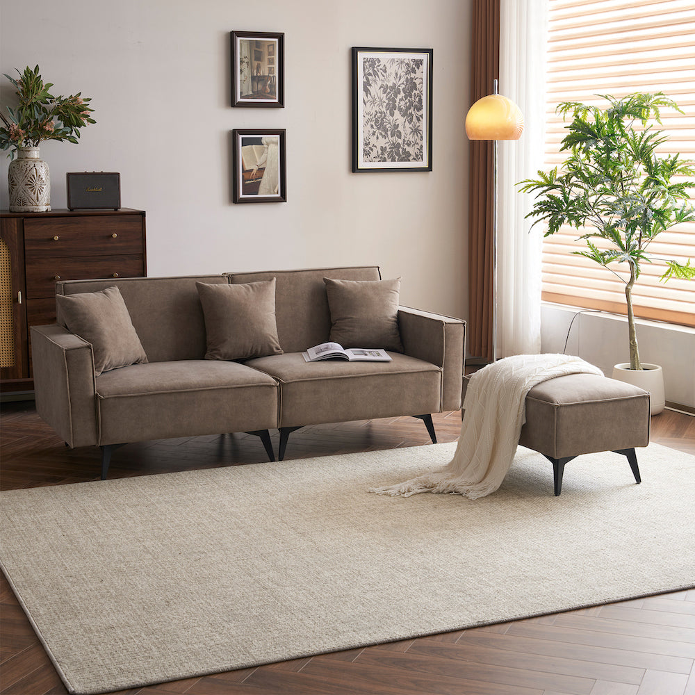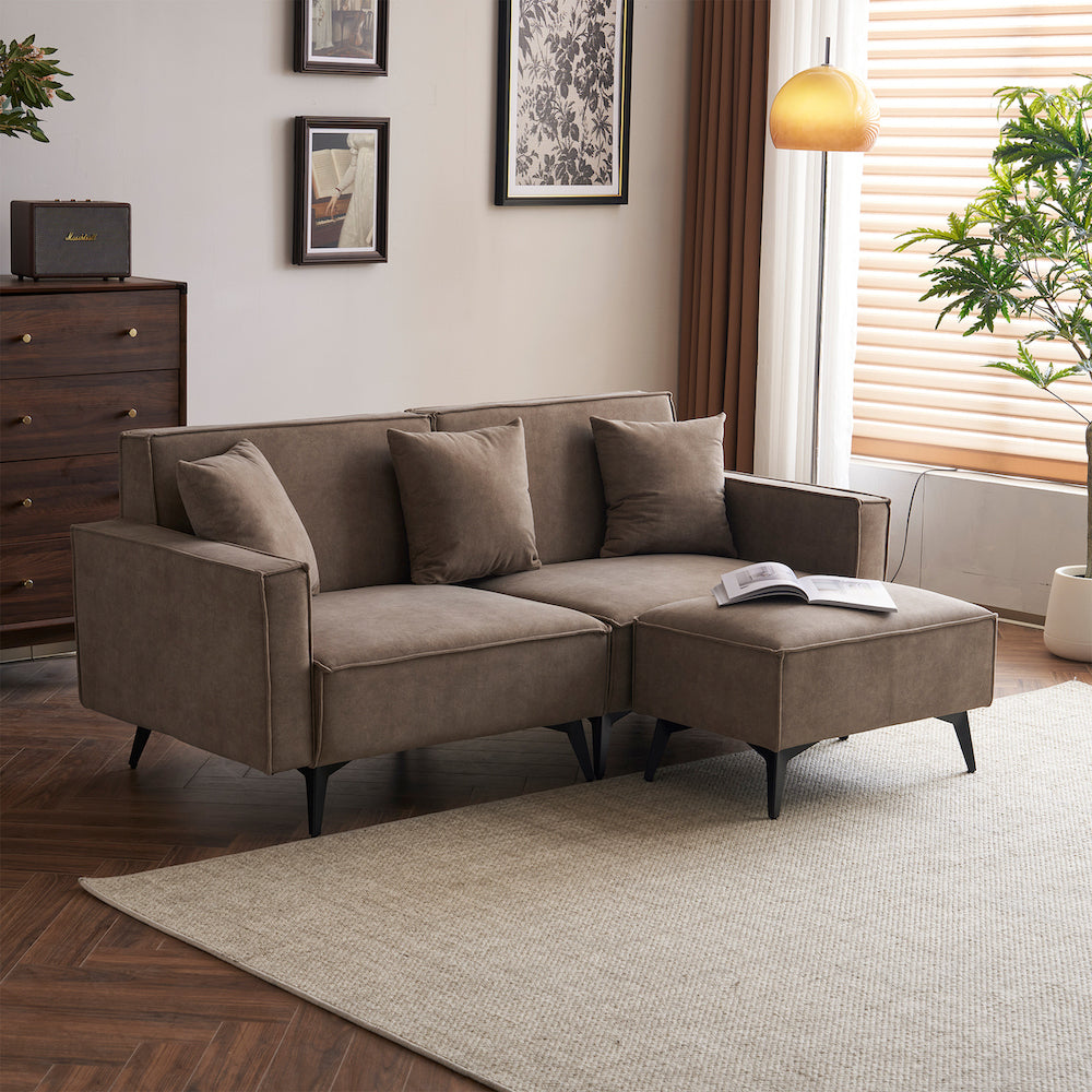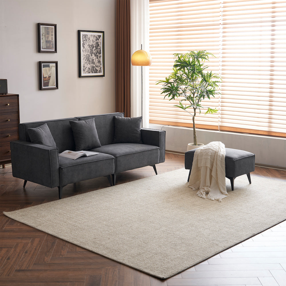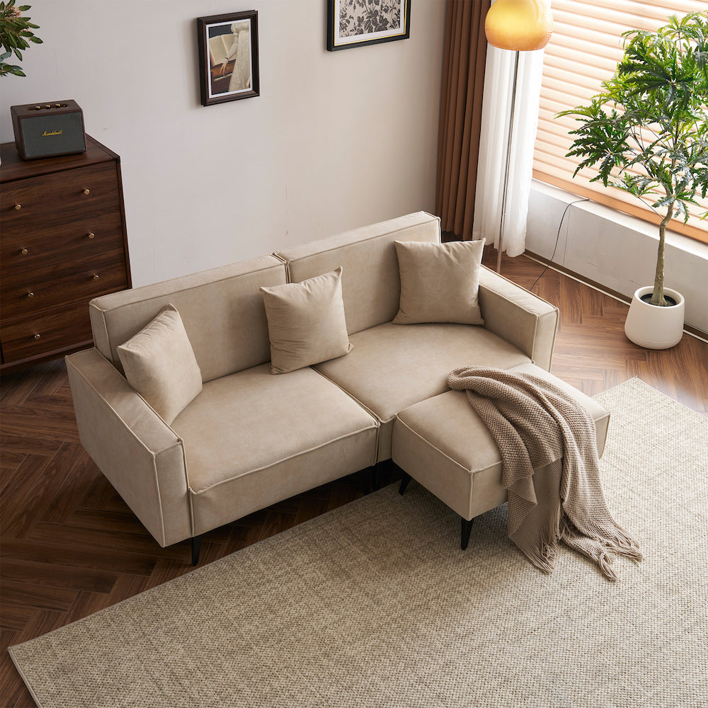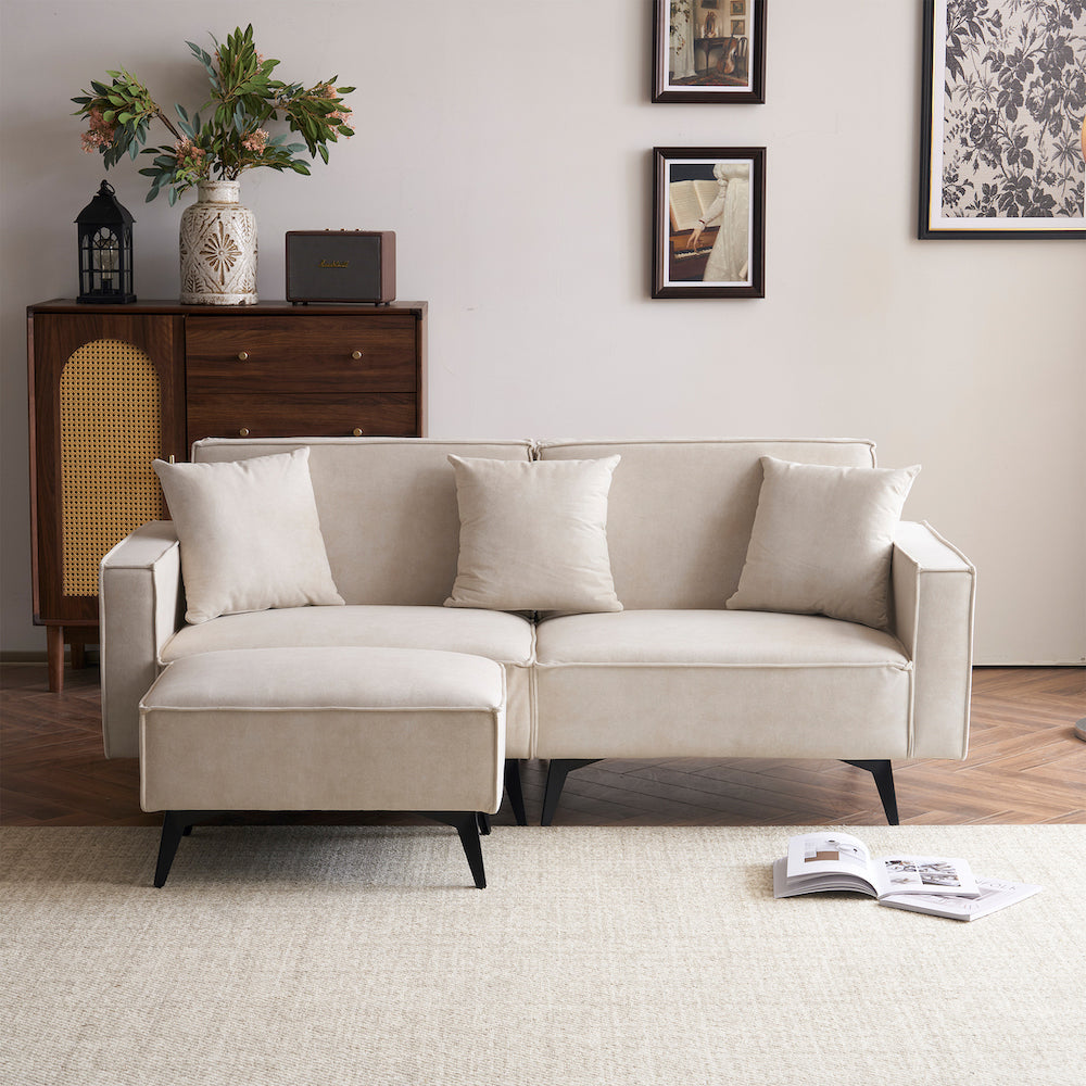 オットマン付L字型コーナーソファは、コンパクトながらも快適なリラックスタイムを提供します。限られたスペースやワンルームに最適で、一人暮らしや小さな家族におすすめです。多機能オットマン、自由なレイアウト、広々とした座面、快適なアームレスト、耐久性のある素材、ポケットコイルクッション、洗濯可能なカバー、スチール製レッグ、高い耐荷重設計など、様々な特長を備えています。どんなインテリアにもマッチし、スタイルや用途に合わせて自由にアレンジ可能です。