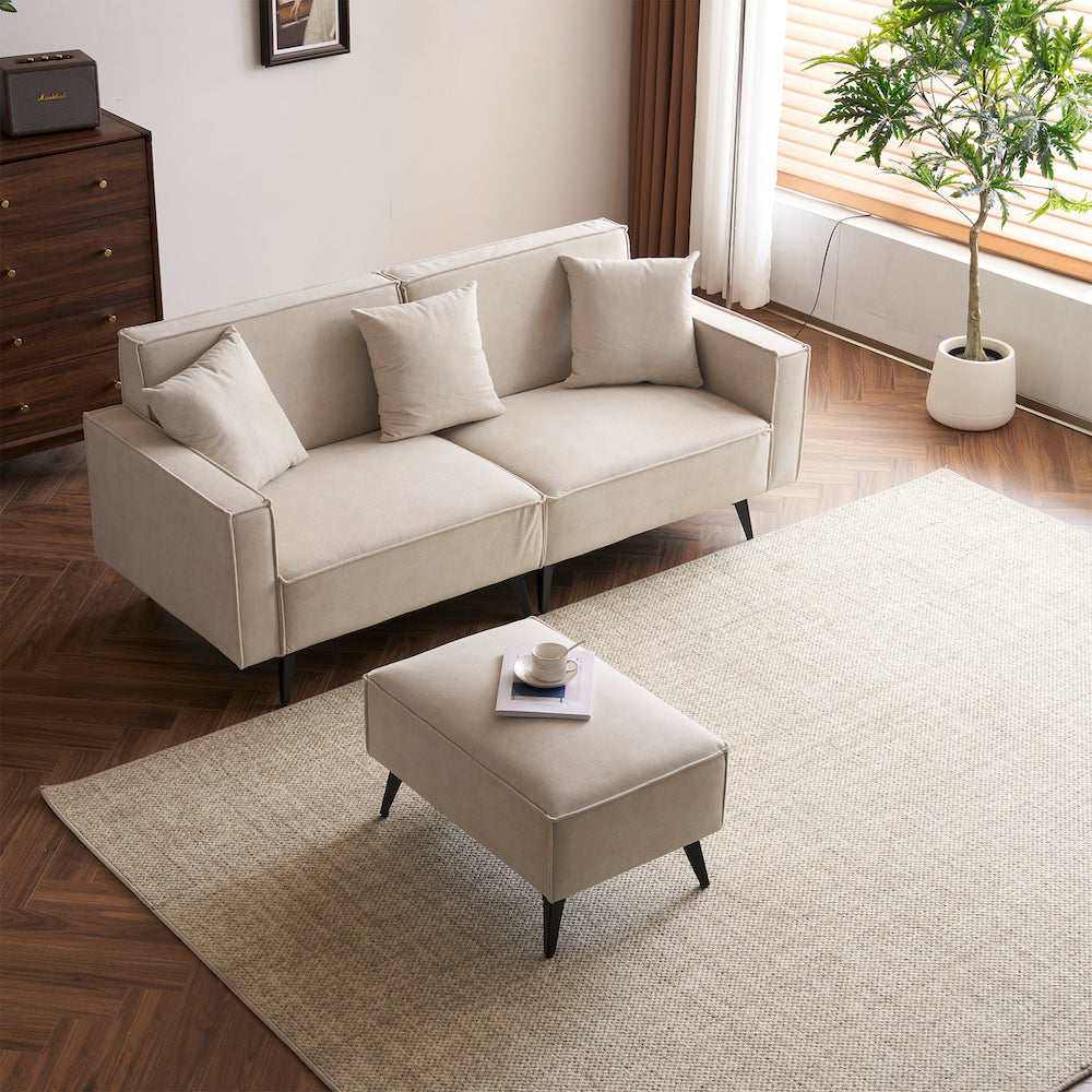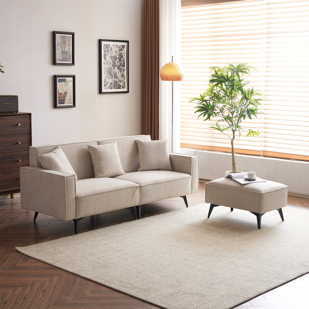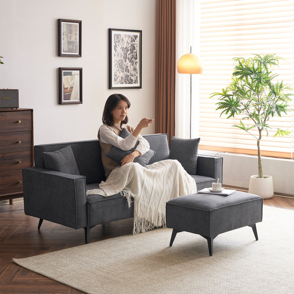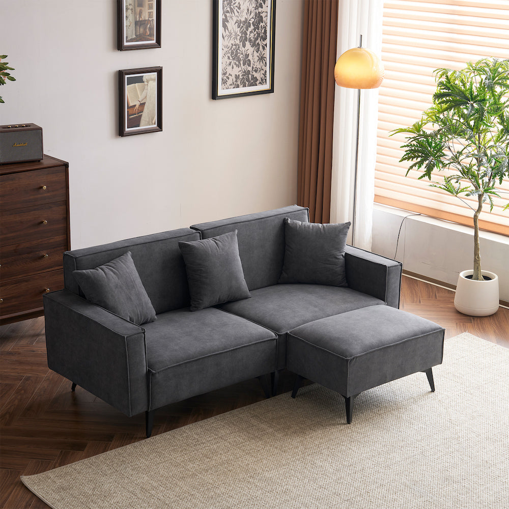 オットマン付L字型コーナーソファは、コンパクトながらも快適なリラックスタイムを提供します。限られたスペースやワンルームに最適で、一人暮らしや小さな家族におすすめです。多機能オットマン、自由なレイアウト、広々とした座面、快適なアームレスト、耐久性のある素材、ポケットコイルクッション、洗濯可能なカバー、スチール製レッグ、高い耐荷重設計など、様々な特長を備えています。どんなインテリアにもマッチし、スタイルや用途に合わせて自由にアレンジ可能です。