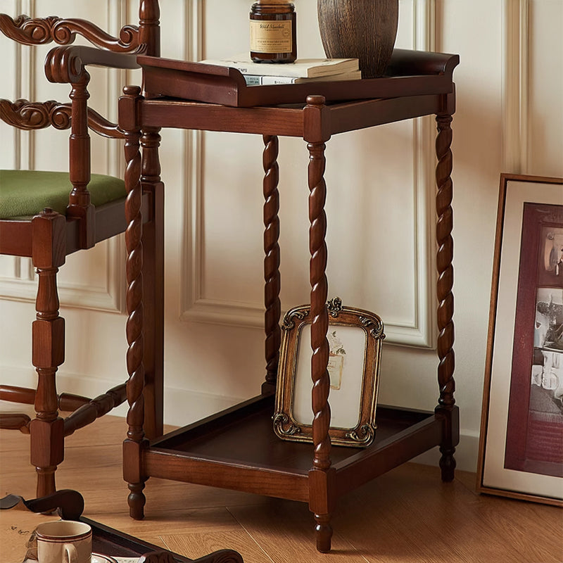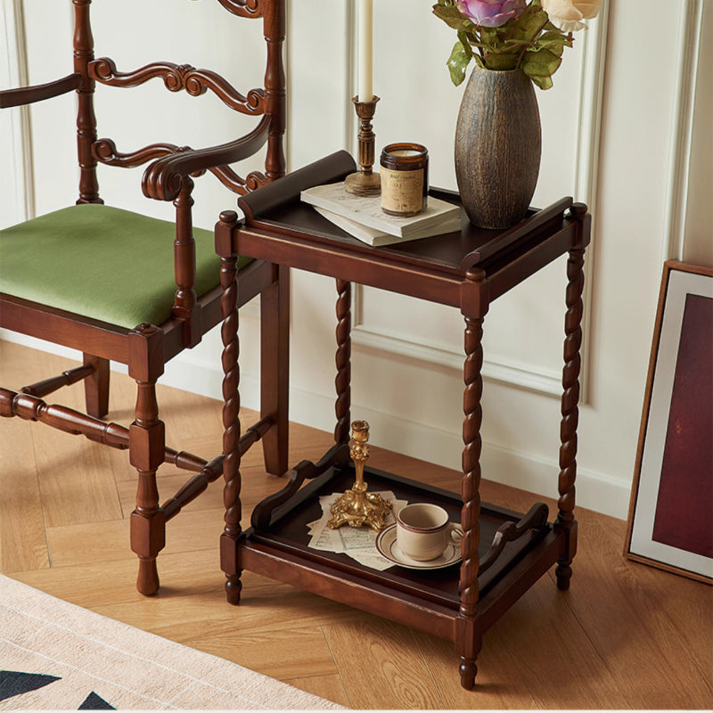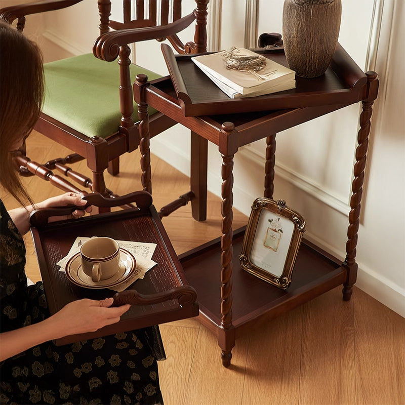 アンティーク調木製サイドテーブルは、優雅なデザインと実用性を兼ね備えた一品です。FAS級ホワイトアッシュ材を使用し、耐久性に優れています。自然な木目と柔らかな色合いが空間に温もりを与えます。幅45cm、奥行34cm、高さ66cmのコンパクトサイズで、どんなスペースにもフィットします。伝統とモダンを調和させた繊細な螺旋の脚部デザインが部屋にアクセントを加えます。2段式の構造で効率的に整理整頓が可能です。可動式トレイ付きで多様な使い方に対応し、落下防止構造で安心して使用できます。どんなインテリアにも自然に馴染み、見るたびにほっと和む特別な一台です。