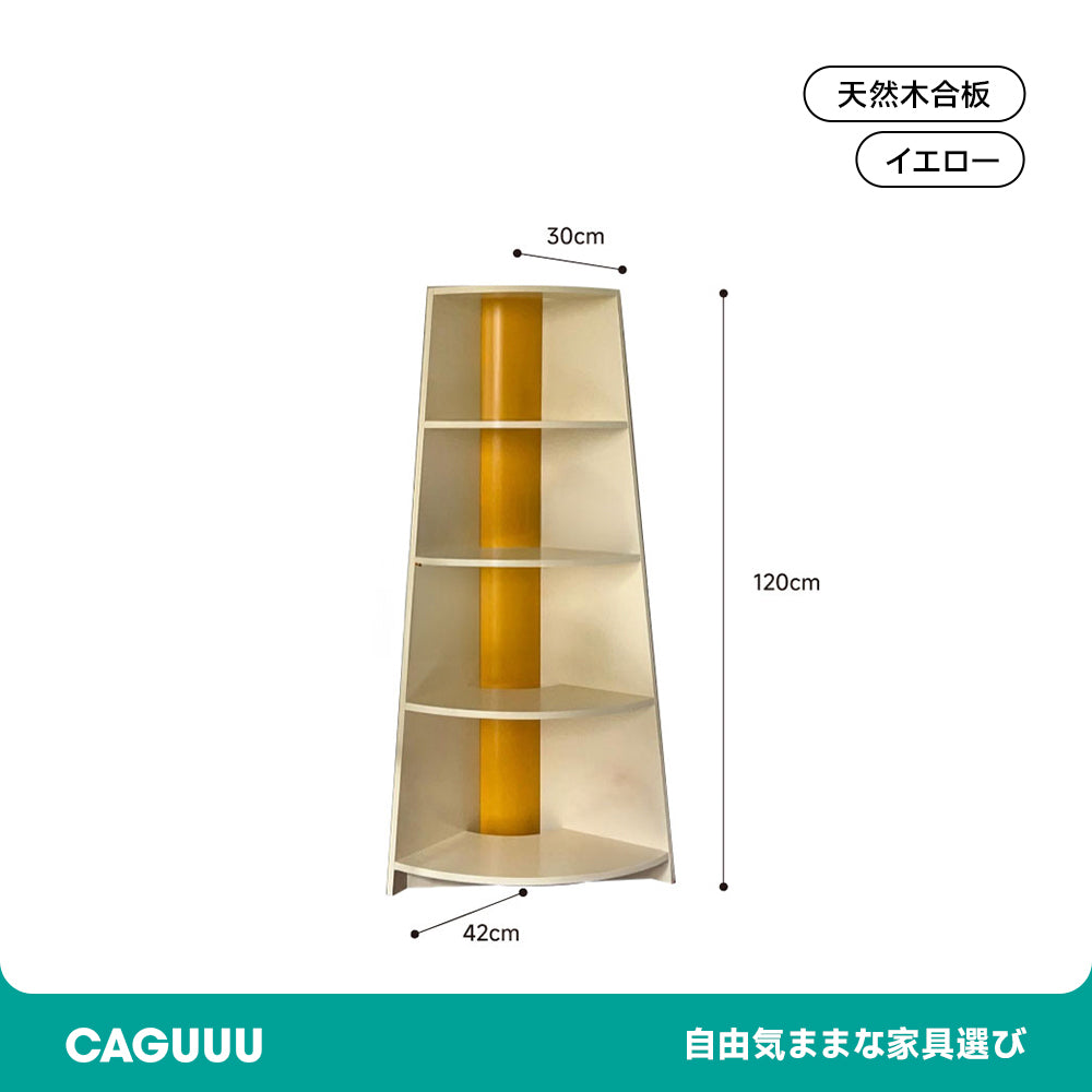 デザインコーナーラックは、スタイリッシュでモダンなインテリアにぴったりの収納ソリューションです。アイボリーとイエローのカラーコンビネーションが空間に明るさをもたらし、コンパクトなサイズで効率的にスペースを活用できます。高品質なEO規格木製合板とE1規格中密度繊維板を使用し、耐久性と安定性を兼ね備えています。簡単に組み立てられ、工具不要で手軽に設置可能なこのラックは、狭いスペースでも活用できる省スペース設計が特徴です。5段の棚で小物や本、装飾品を美しく整理できます。次回入荷予定日は5月10日ですので、お早めのご予約をお勧めいたします。