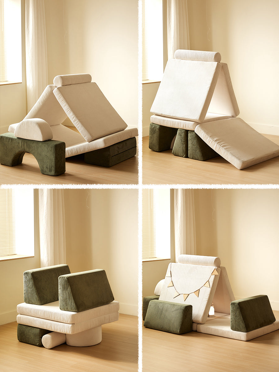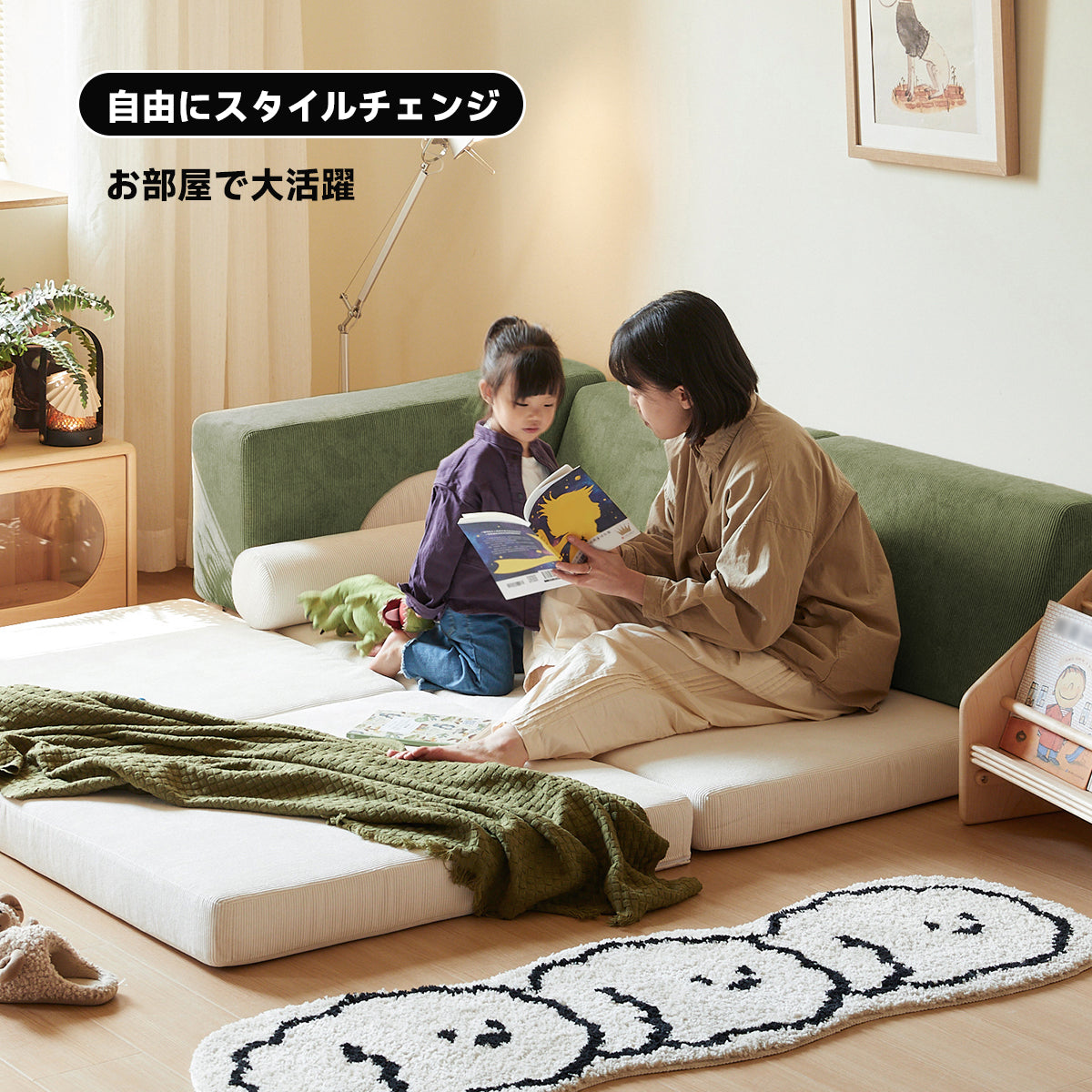 積み木キッズソファは、子供たちの創造力を引き出すモジュール式ソファです。7つのパーツで自由に組み合わせ可能で、遊び心を刺激します。コーデュロイ生地を使用し、肌触りが良く耐久性も抜群。高反発ウレタンが柔らかく快適な座り心地を提供し、ズレにくい安全設計で安心して遊べます。イエローとグリーンの2色展開で、子供部屋やリビングにぴったりです。洗濯可能なカバーで常に清潔を保て、長く使用できる家族向けのソファです。