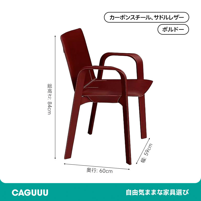 クラシックサドルレザーアームチェアは、エレガントで洗練されたデザインが特徴です。厳選された厚手のサドルレザーとA3グレードの炭素鋼フレームを使用し、耐久性と高級感を兼ね備えています。高密度ウレタンが充填された座面と背もたれは、快適な座り心地を提供します。個性的な曲線アームレストがスタイリッシュでモダンな印象を与え、どんなインテリアにもマッチします。オレンジ、ボルドー、ブルー、ブラック、グリーン、レッド、モカブラウンのカラーオプションがあり、オフィスやリビングルーム、ダイニングルームなど、さまざまなシーンで活躍します。