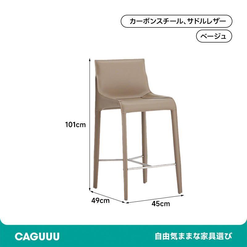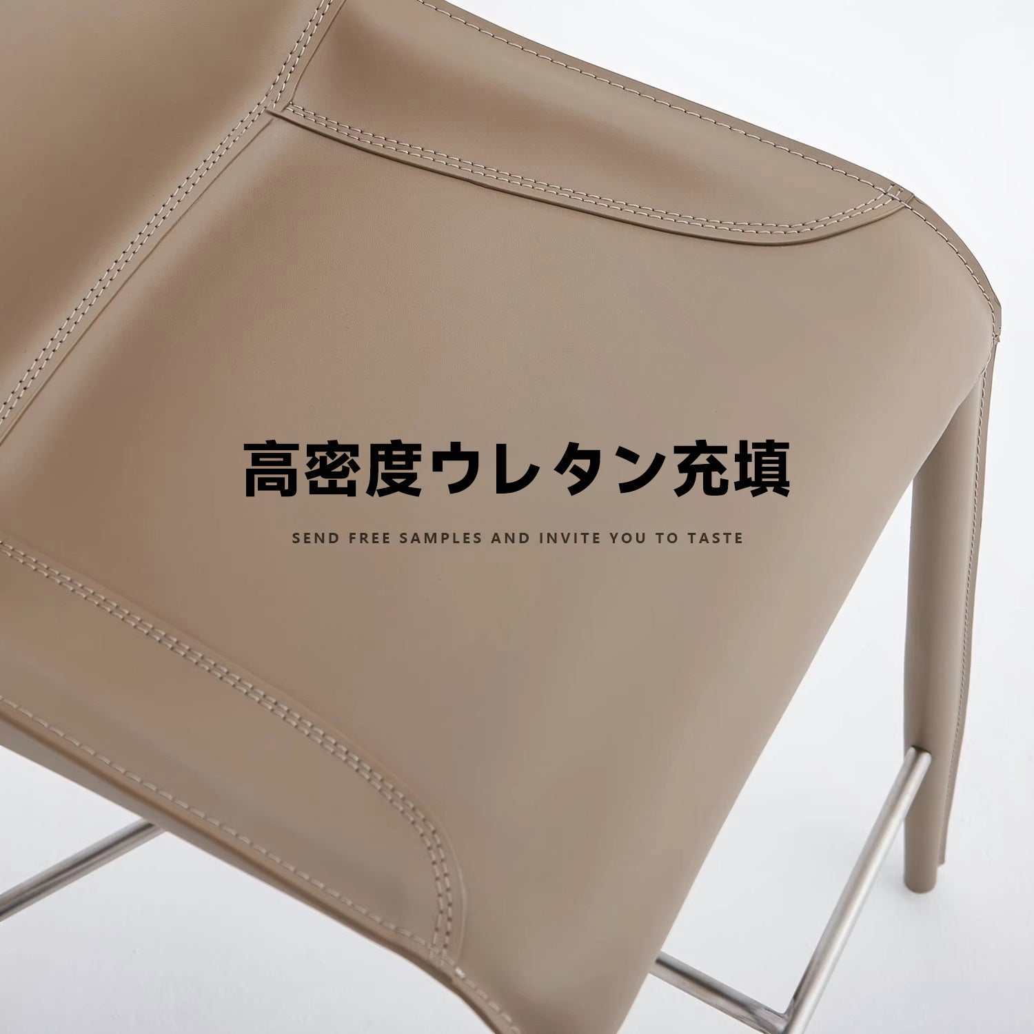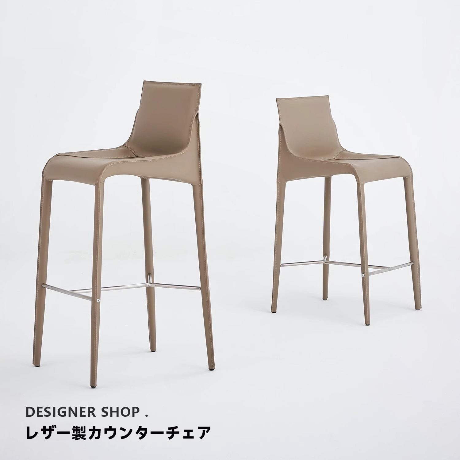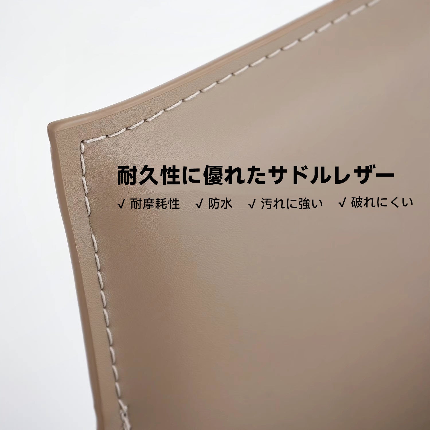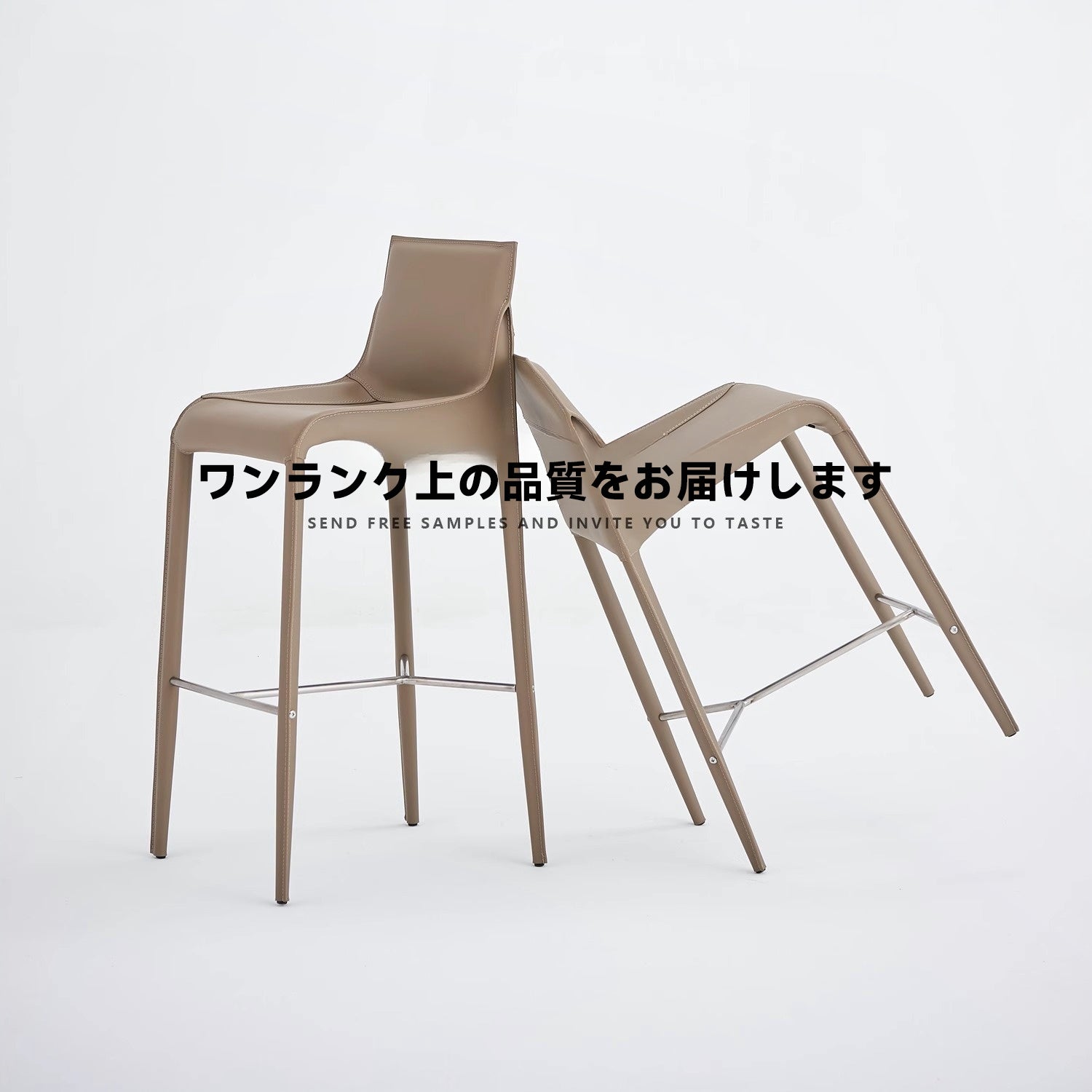 レザーデザインカウンターチェアは、スタイリッシュでモダンなデザインと高い耐久性が特徴です。サドルレザーを使用し、耐摩耗性、防水性、汚れに強く、破れにくい特性を持ちます。高密度ウレタン充填により、通気性と柔らかさに優れ、長時間座っても快適です。人間工学設計で腰に負担をかけず、炭素鋼フレームは150kgの耐荷重を誇ります。ステンレス製の足掛けは安定性が高く、揺れにくい設計です。シンプルながら高級感のあるデザインで、どんなインテリアにもマッチします。