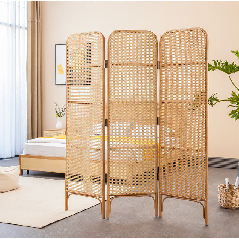 ラタン製3連パーテーションは、インドネシア産の高級天然ラタンを使用し、熟練の職人が手作業で作り上げた逸品です。伝統的な八角編み技法を用いた美しいデザインと耐久性が特徴で、どんなインテリアにも調和します。高さ180cm、幅153cmのサイズで、軽量で移動が簡単。部屋の間仕切りやプライバシーの確保に最適です。自然素材の温かみを感じさせると同時に、機能性も兼ね備えたアイテムで、快適な空間作りをサポートします。