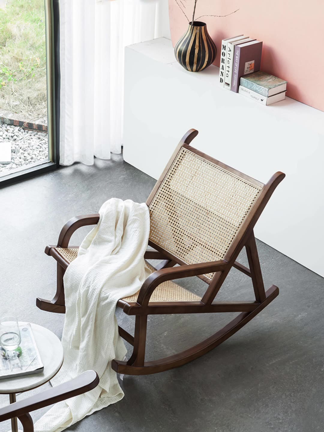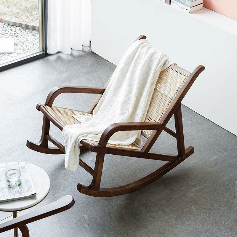 木製ラタン編みロッキングチェアは、シンプルで高級感のあるデザインが特徴です。FAS級ホワイトアッシュ材と天然ラタンを使用し、環境に優しい塗装が施されています。インドネシア産のラタンは美しさと通気性を兼ね備え、蒸れにくいのが特長です。前方15°、後方30°の安全な揺れ角度を提供し、安定性を確保。寝室やリビング、書斎など、どんな空間にも配置可能です。幅63cm、奥行き105cm、高さ82cmのサイズで、家具の特性上、1〜5cmの誤差が生じる場合があります。静かな一角でくつろぎたい方に最適なロッキングチェアです。