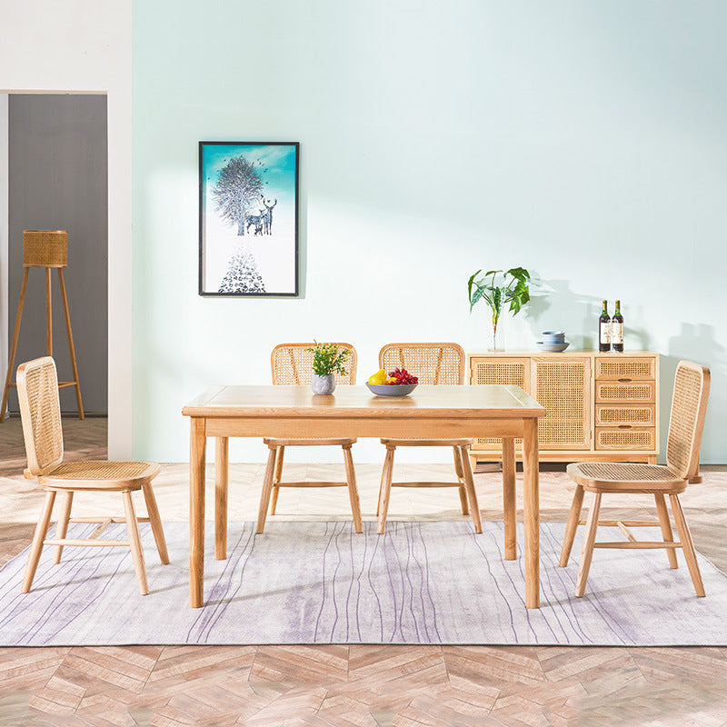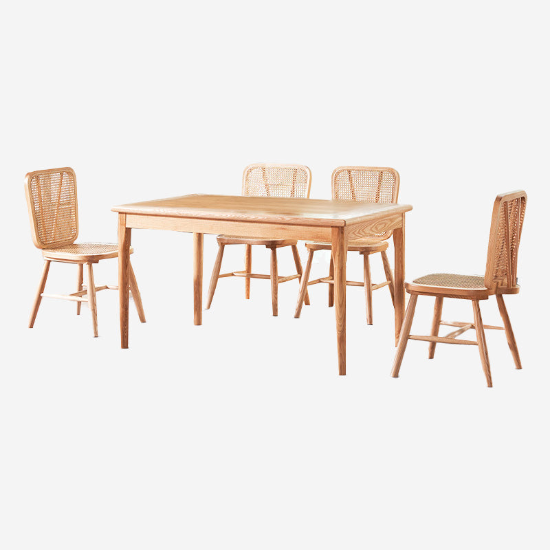 ラタン製ダイニングテーブルセットは、北米産FAS級ホワイトアッシュ材とインドネシア産ラタンを使用したエレガントなデザインが特徴です。耐久性と美しい木目を誇るテーブルと、弾力性と通気性に優れた椅子は、快適な座り心地を提供します。ナチュラルな木目とシンプルなデザインはどんなインテリアにもマッチし、環境に優しい水性塗料を使用しています。組み立ても簡単で、家族や友人との団らんに最適なサイズです。