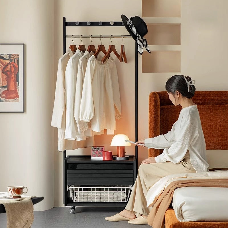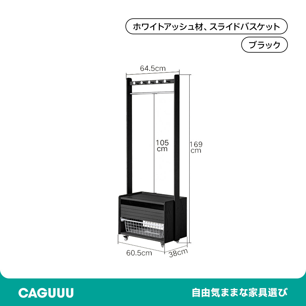 ホワイトアッシュ材 チェスト付き可動ハンガーラック