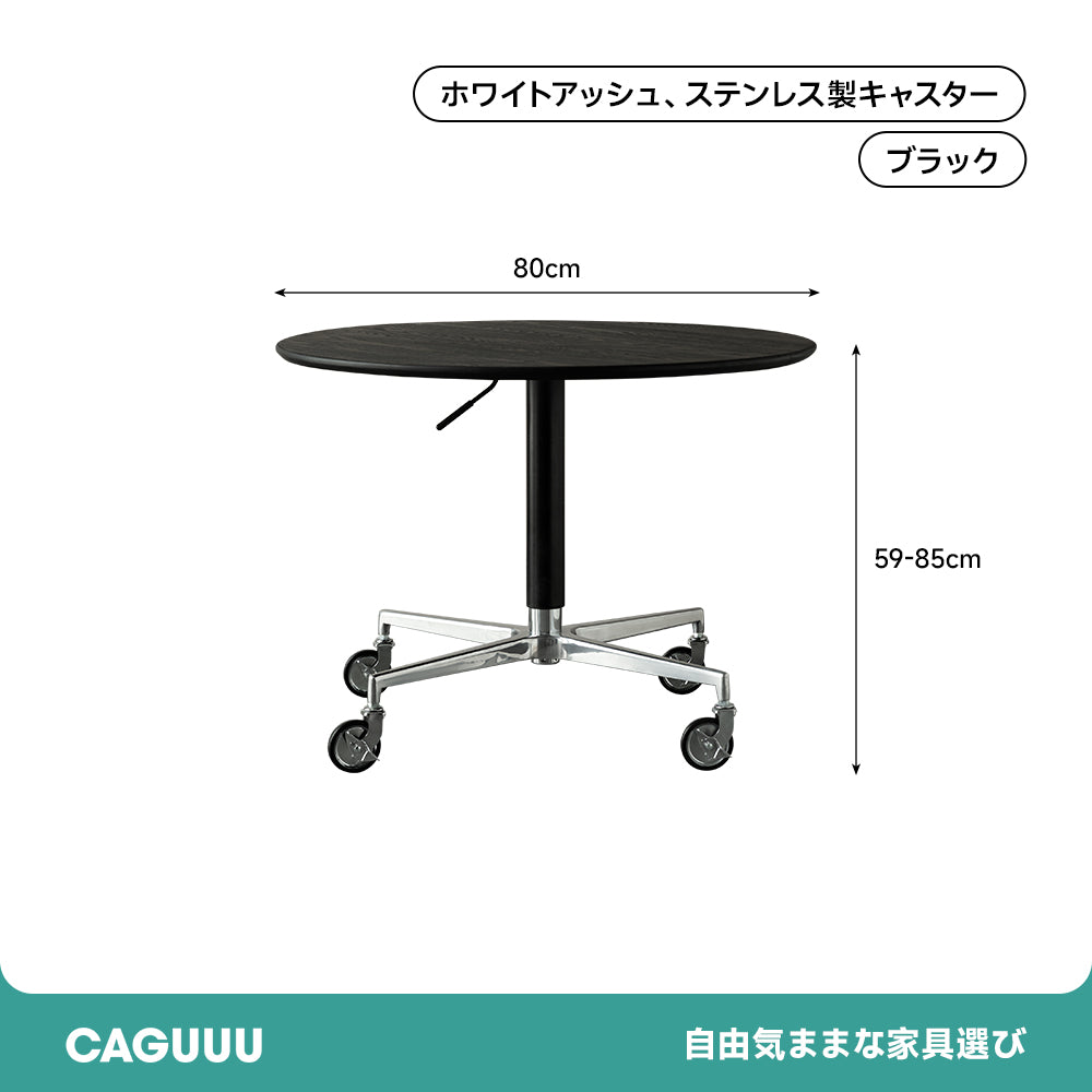 ホワイトアッシュ材 昇降式ラウンドテーブルは、北米産のFASグレードホワイトアッシュ材を使用した高級感溢れる家具です。自然の美しい木目と耐久性に優れたこのテーブルは、リビングでの作業やティータイムに最適です。高さ調整機能により、59cmから85cmまでスムーズに調整可能で、ノートPCを置いて快適に作業できます。ステンレス製の頑丈な脚部と静音キャスターで、移動も簡単。ジャパンディスタイルにぴったりなデザインで、ファミリーやカップルにおすすめです。