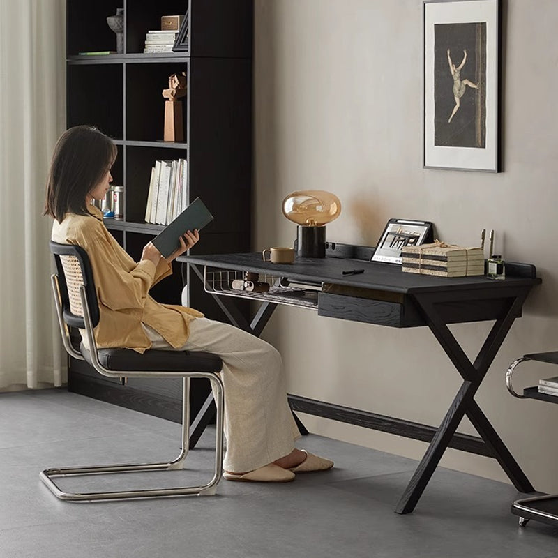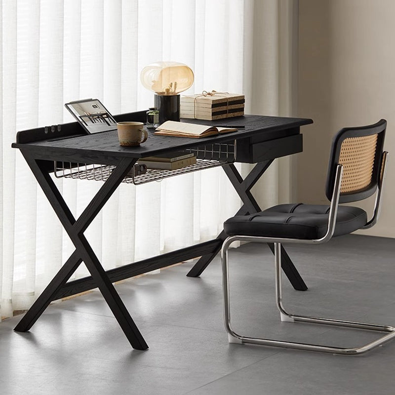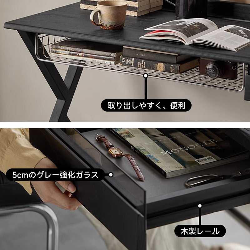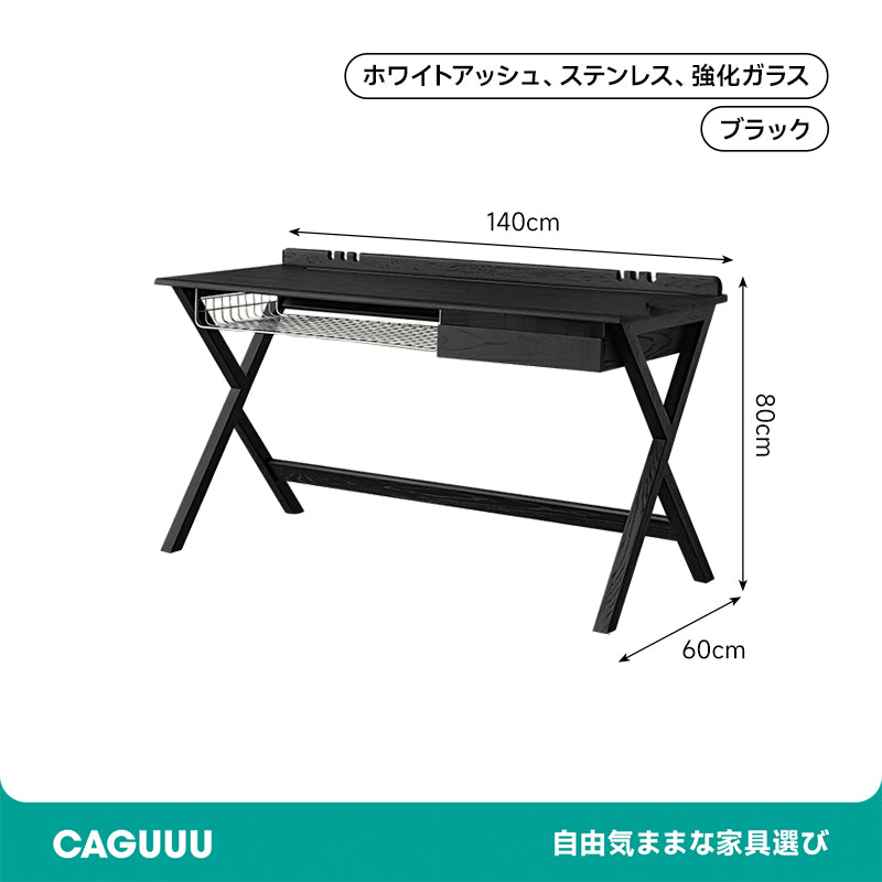 ホワイトアッシュ材 モダンブラックワーキングデスク