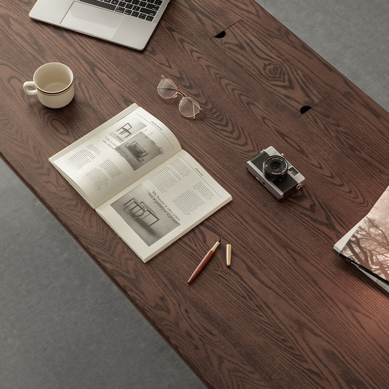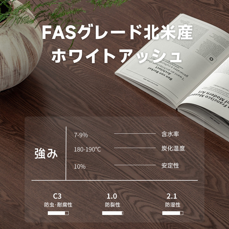 ホワイトアッシュ材 収納付きワークデスクは、FASグレードの北米産ホワイトアッシュ材を使用した高級感あふれるデザインが特徴です。広々とした作業スペースと頑丈な構造により、耐久性と耐荷重性に優れています。スマート収納機能で文具や小物を整理しやすく、配線もすっきりと収納可能。ナチュラルな木目が美しく、書斎やリビングにぴったりの洗練されたシルエットを演出します。一人暮らしの方やナチュラルなインテリアを好む方に最適なデスクです。