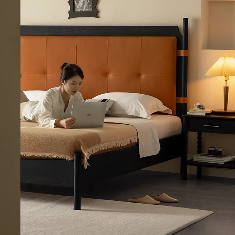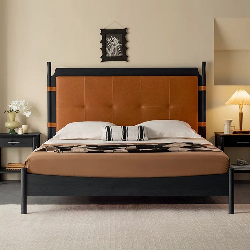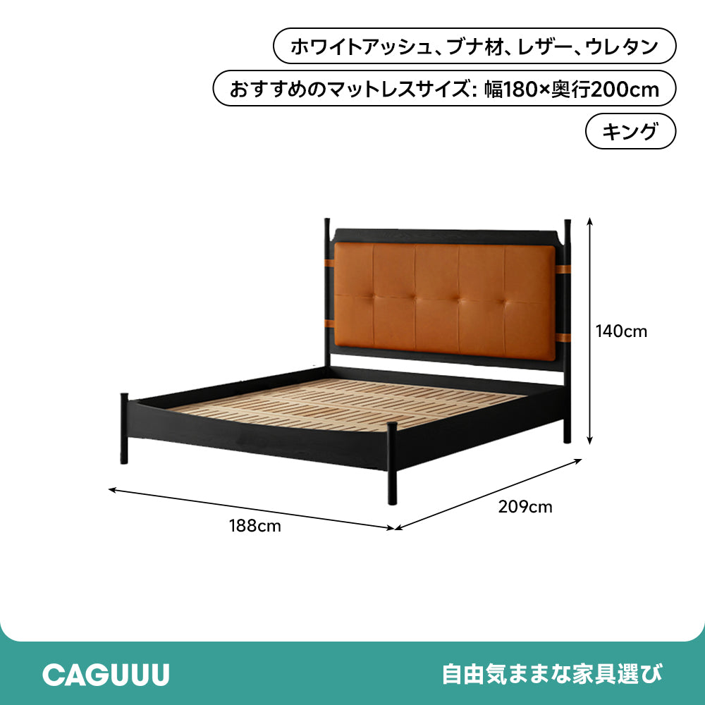 トップグレインレザーウッドベッド