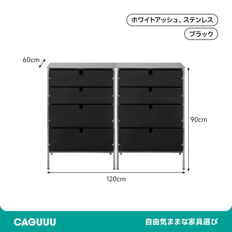 ホワイトアッシュ材 両面引き出し木製キャビネット