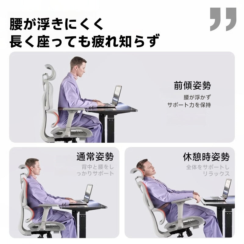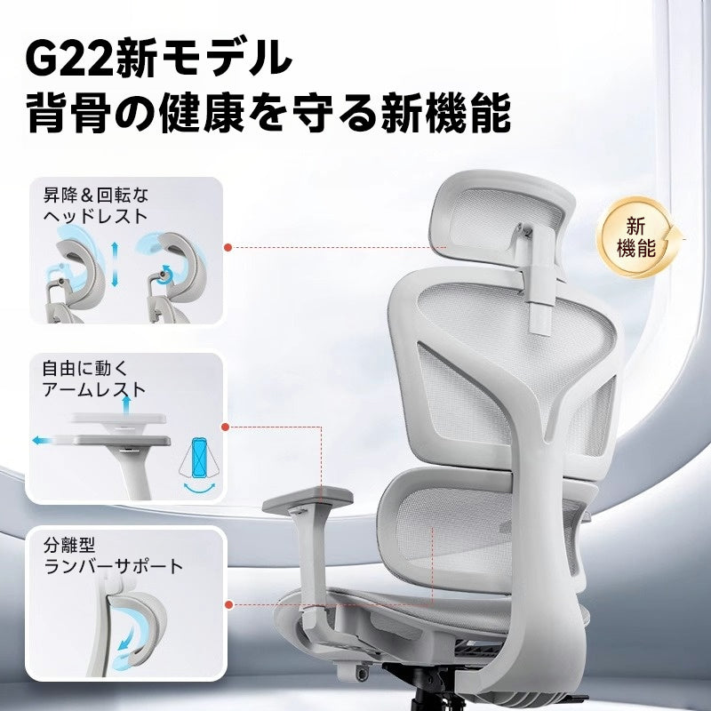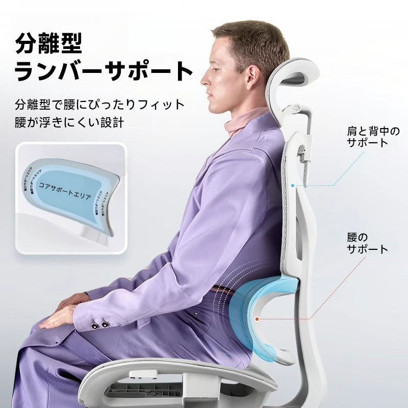 スマートフィットワークチェアは、快適な作業環境を実現するための高機能オフィスチェアです。分離型ランバーサポートや可動式ヘッドレスト、調整自在のアームレストなど、長時間のデスクワークをサポートする機能が充実しています。通気性抜群のメッシュ素材と高品質素材を使用し、耐久性と快適性を兼ね備えています。オフィスや自宅での使用に最適なこのチェアは、スタイリッシュなデザインと実用性を提供します。