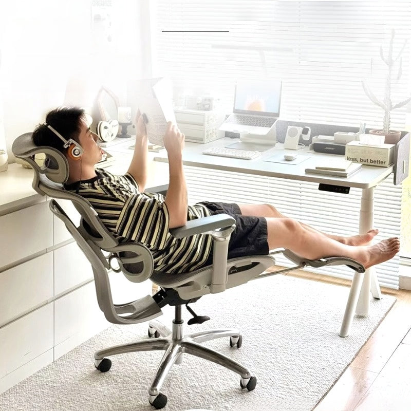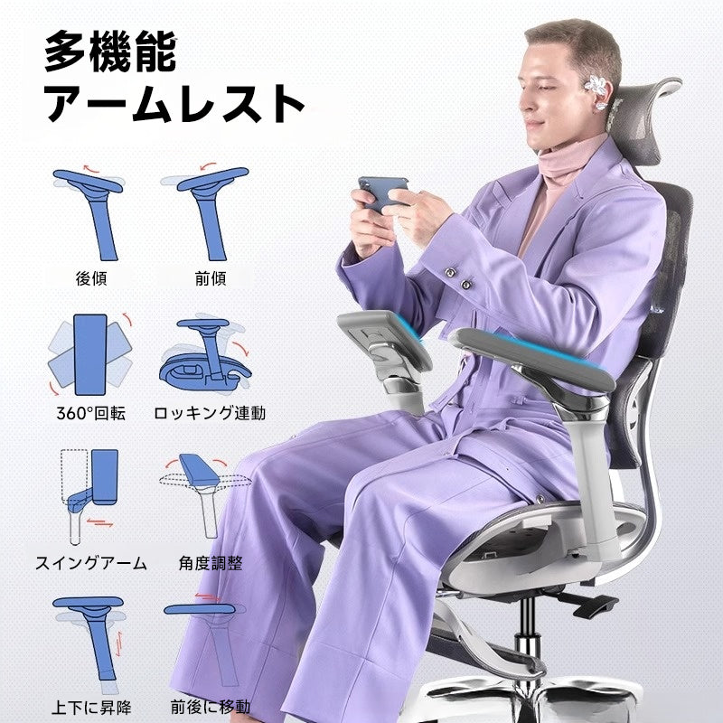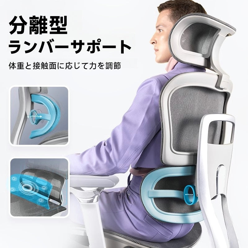 アクティブコンフォートチェアは、快適さと機能性を兼ね備えたエルゴノミクスデザインが特徴です。分離型ランバーサポート、多機能アームレスト、快適なヘッドレスト、スライド可能な座面、高通気性メッシュ素材、耐荷重性抜群の脚部、静音キャスター、オットマンなど、多彩な機能で長時間の作業やリラックスタイムを快適にサポートします。グレーとブラックの2色展開で、インテリアに合わせて選べます。