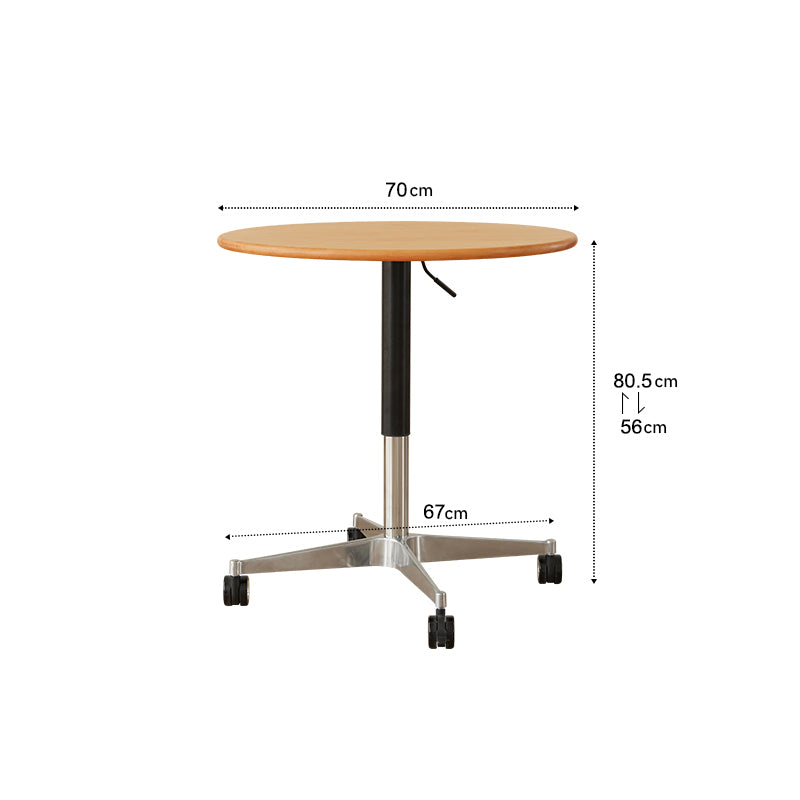 キャスター付き昇降テーブルは、北米産FAS級チェリーウッドを使用し、高級感のある自然な木目とオイルワックス仕上げが特徴です。ガス圧昇降機能により、56cmから80.5cmまで無段階で高さを調整可能。360°回転キャスター付きで移動も簡単。アルミニウム合金の脚部と15mmのパイプ厚で頑丈な構造を持ち、最大40kgの荷重を支えます。直径70cmの広々とした天板は、パソコンや書類を置くのに十分なスペースを提供。滑らかな面取り加工で安全性も確保されています。リビングやオフィス、ベッドサイドなど、さまざまなシーンで快適な作業環境を提供します。