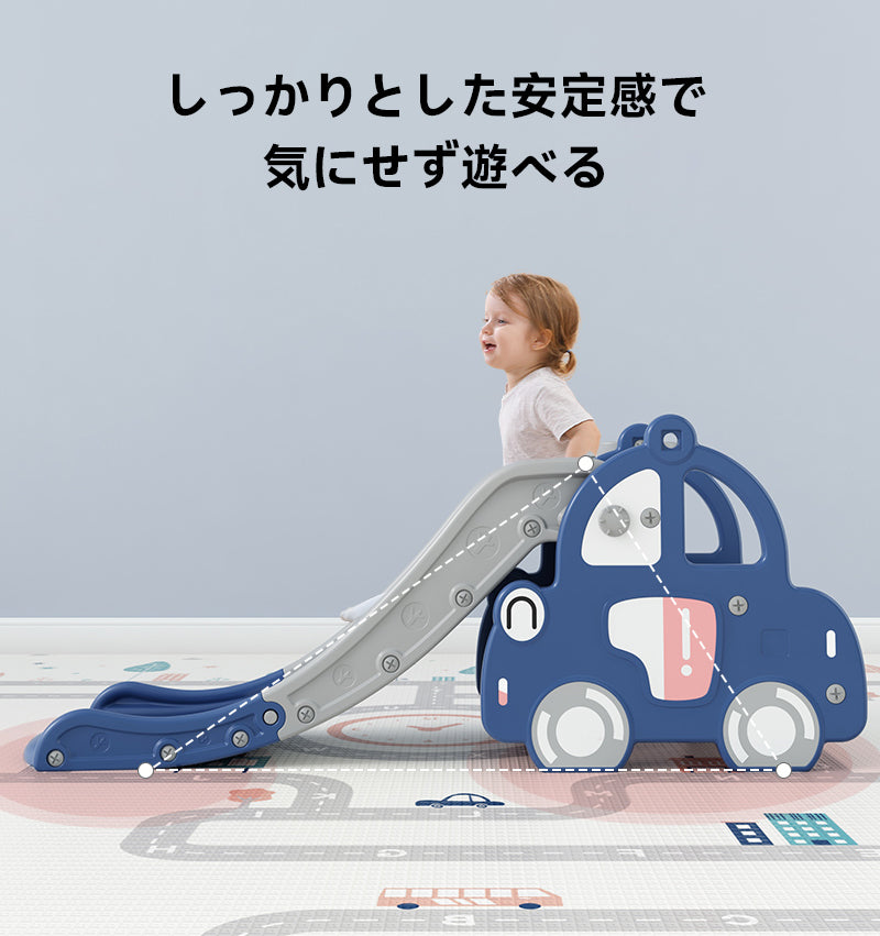 くるまデザインの滑り台は、子どもたちが安全に楽しく遊べるように設計されたユニークなアイテムです。ブルーとピンクのカラーバリエーションから選べ、滑り止め付きのステップや41cmの安全な高さ、40度の緩やかなスロープで安心して遊べます。折りたたみ可能でコンパクトに収納でき、環境に優しい無臭のPE素材を使用。三角構造で安定感抜群、1歳から8歳までの子どもに最適です。室内外で使用可能で、家族全員で楽しめます。