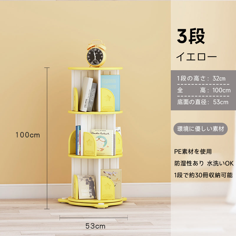 この360度回転式の子供用本棚は、幼児から小学生までの幅広い年齢層に対応できる便利な収納アイテムです。環境に優しいHDPE素材を使用し、無害で安心して使用できる安全設計。高さ調整で1段に約30冊の本が収納でき、大容量ながら省スペースを実現します。底部には厚手のシリコン吸盤が付き、しっかりと固定されるため、活発な幼児がいる環境でも転倒の心配がありません。簡単に組み立てができ、明るいカラーで子供部屋に華やかさを添えるデザイン。お子様の本好きな成長をサポートするための最適な本棚です。
