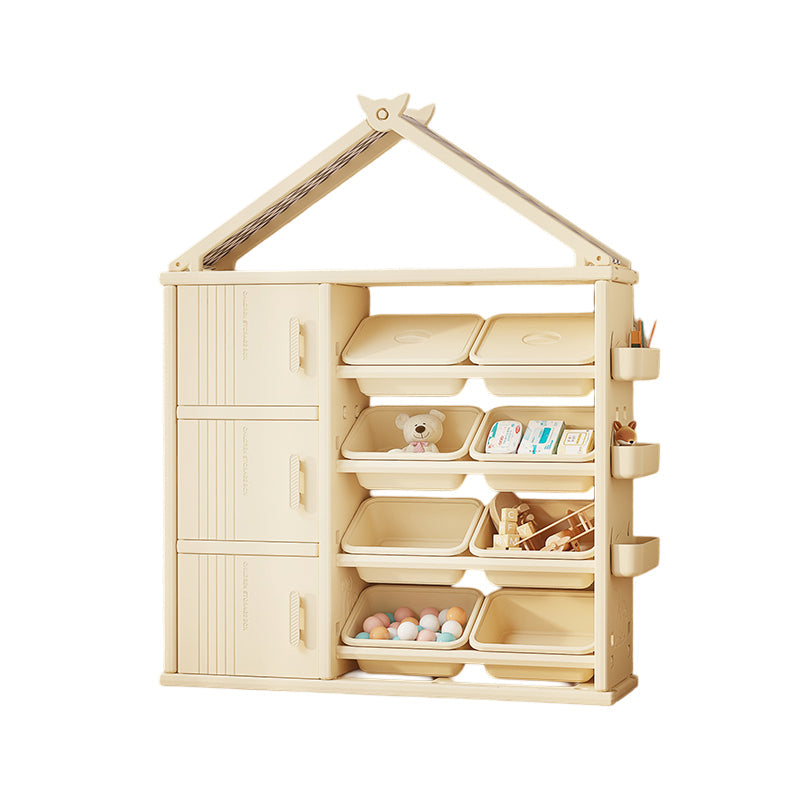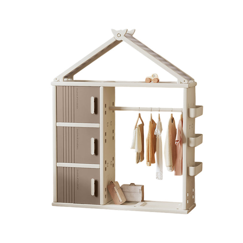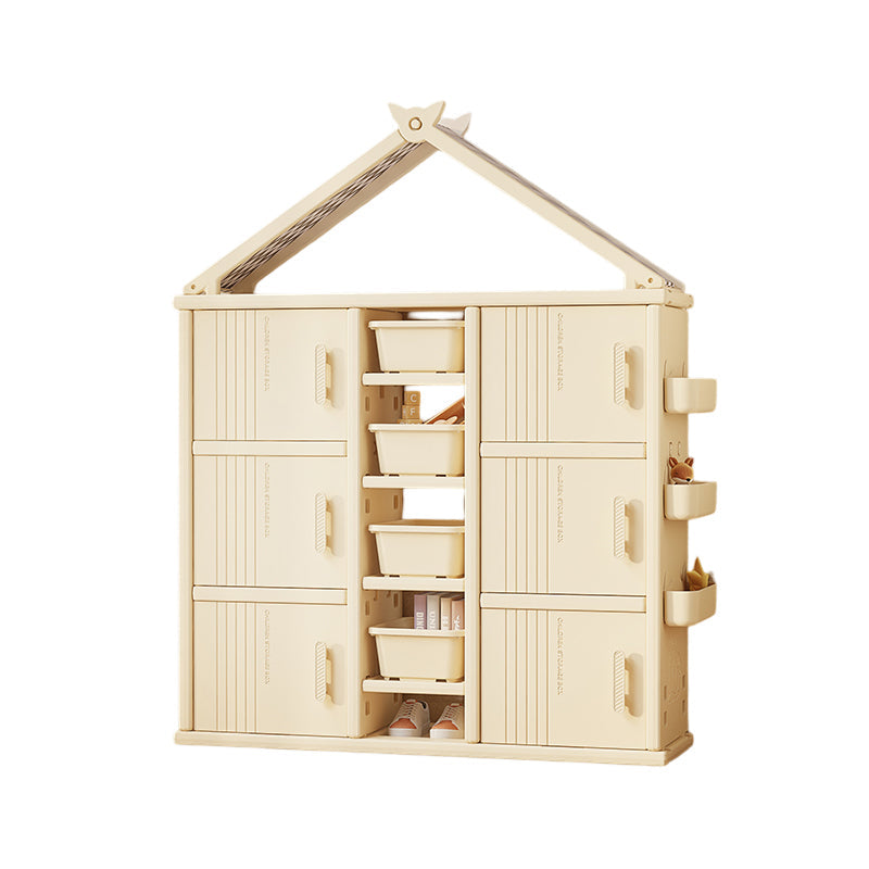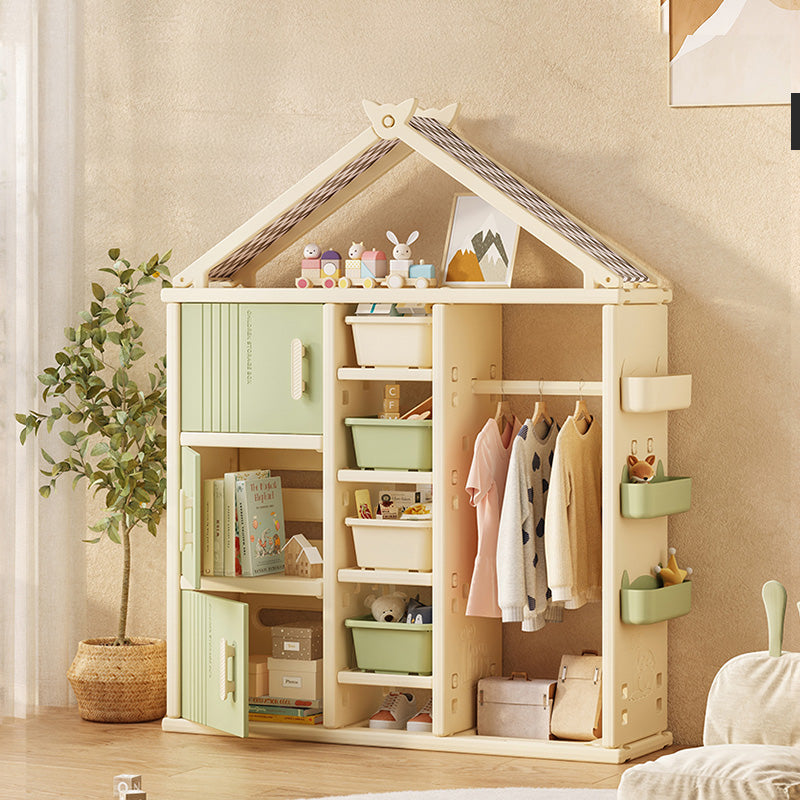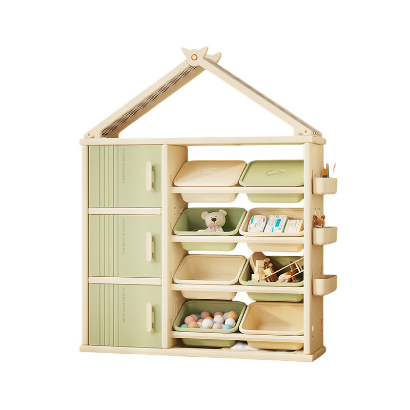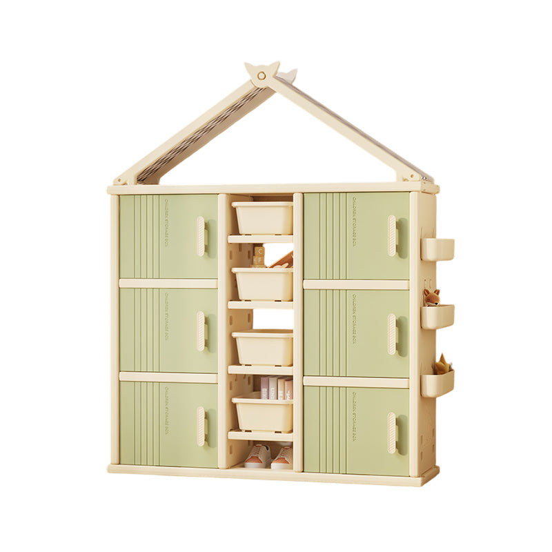 屋根付きデザイン収納ラックは、子どもの成長に合わせて長期間使用できる多機能な収納ソリューションです。衣類、おもちゃ、本などを分類して収納できるため、一目でどこに何があるかが分かります。環境に優しいHDPE素材を使用し、安全性と耐久性に優れています。組み立ても簡単で、0歳から12歳以上まで使用可能。アイボリーとグリーンの2色展開で、お部屋のインテリアに合わせやすいデザインです。