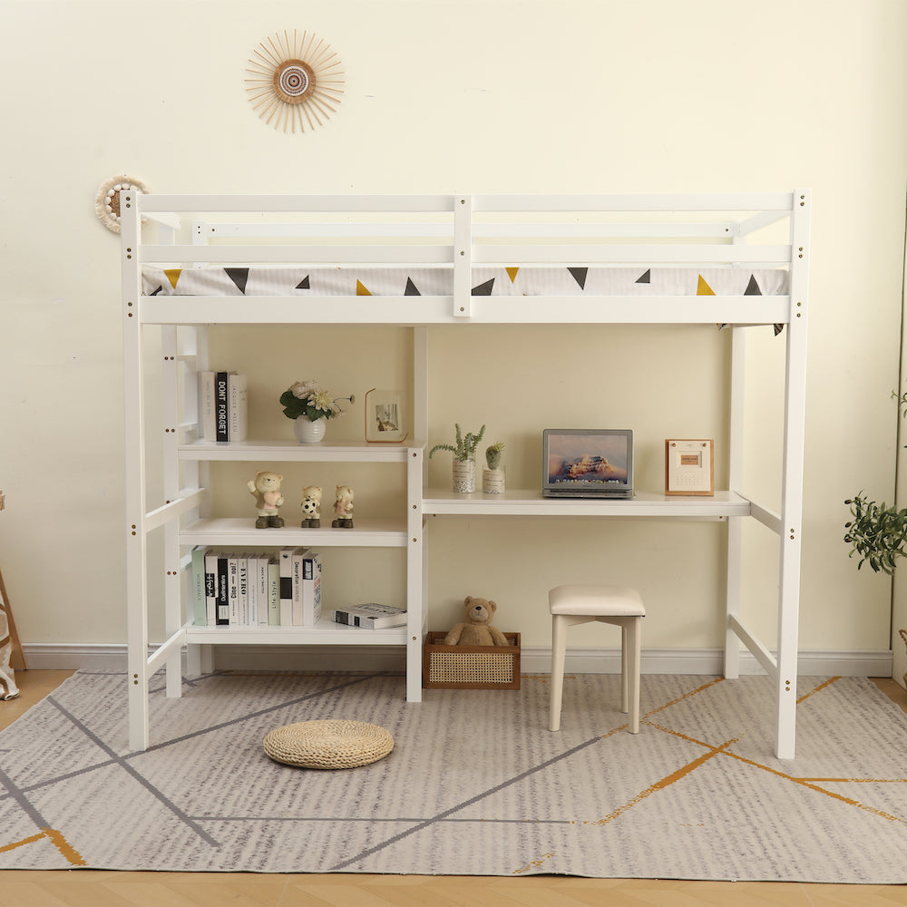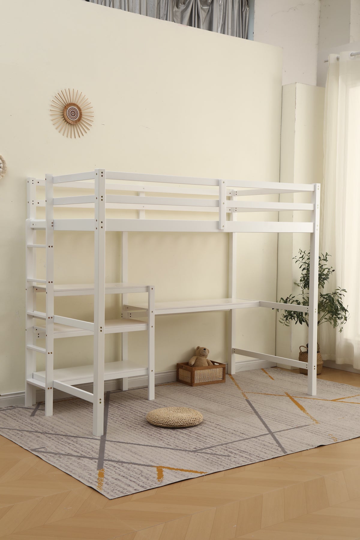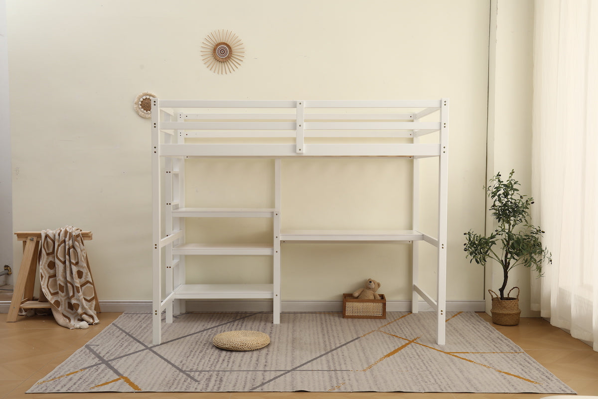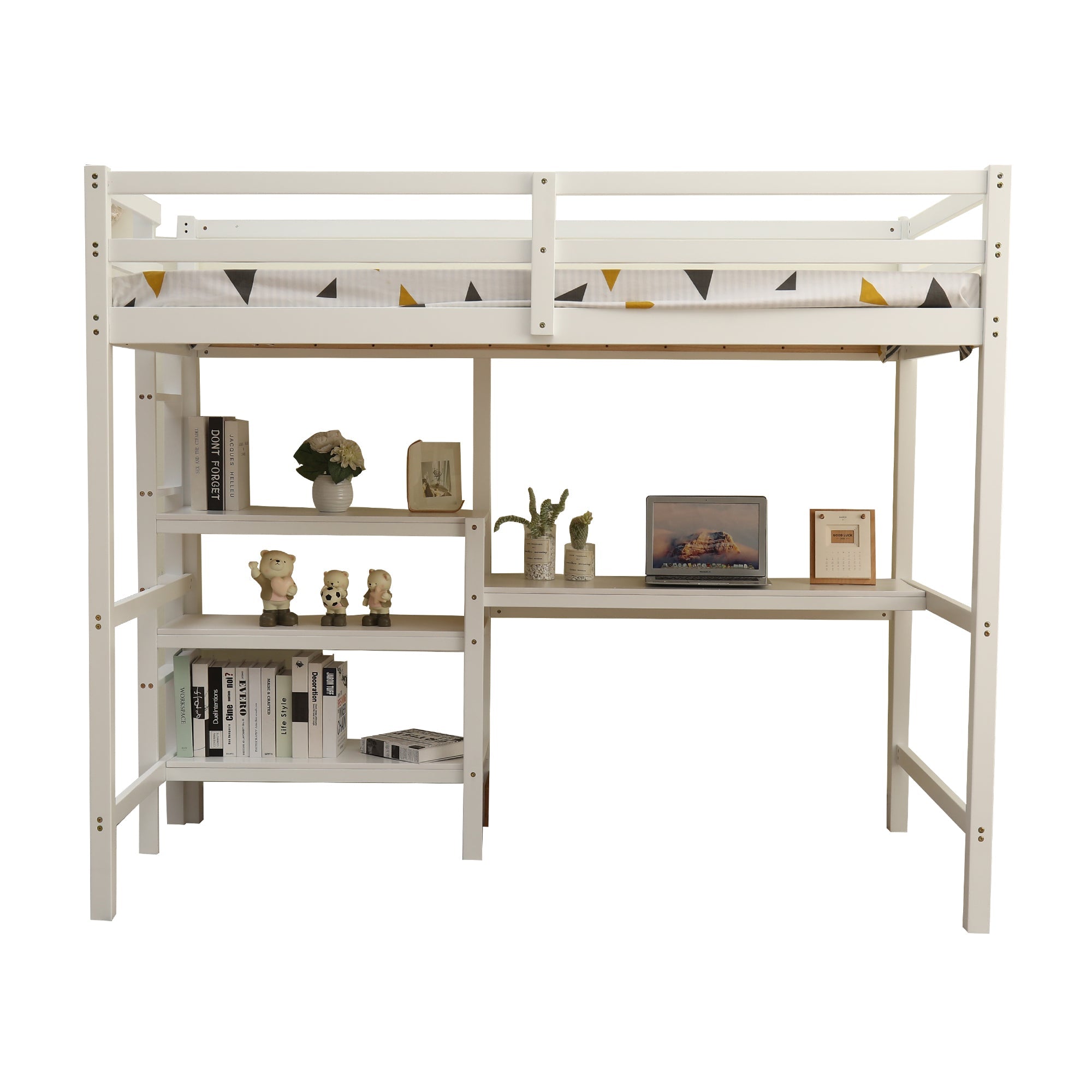 木製デスク付きロフトベッドは、限られたスペースを最大限に活用するための理想的なソリューションです。学生や一人暮らしの方に最適で、成長期の子供にもぴったりです。多機能デザインでベッドとデスクが一体化し、ナチュラルとホワイトの2色展開でどんなインテリアにも調和します。ニュージーランドパインを使用した耐久性のある構造で、150kgまでの耐荷重を実現。安全性も考慮され、高いベッドガードと通気性に優れた床板構造で安心してご利用いただけます。デスク下の広々とした収納スペースで整理整頓も簡単。131.5cmの高さがあり、プライベート空間を確保できます。