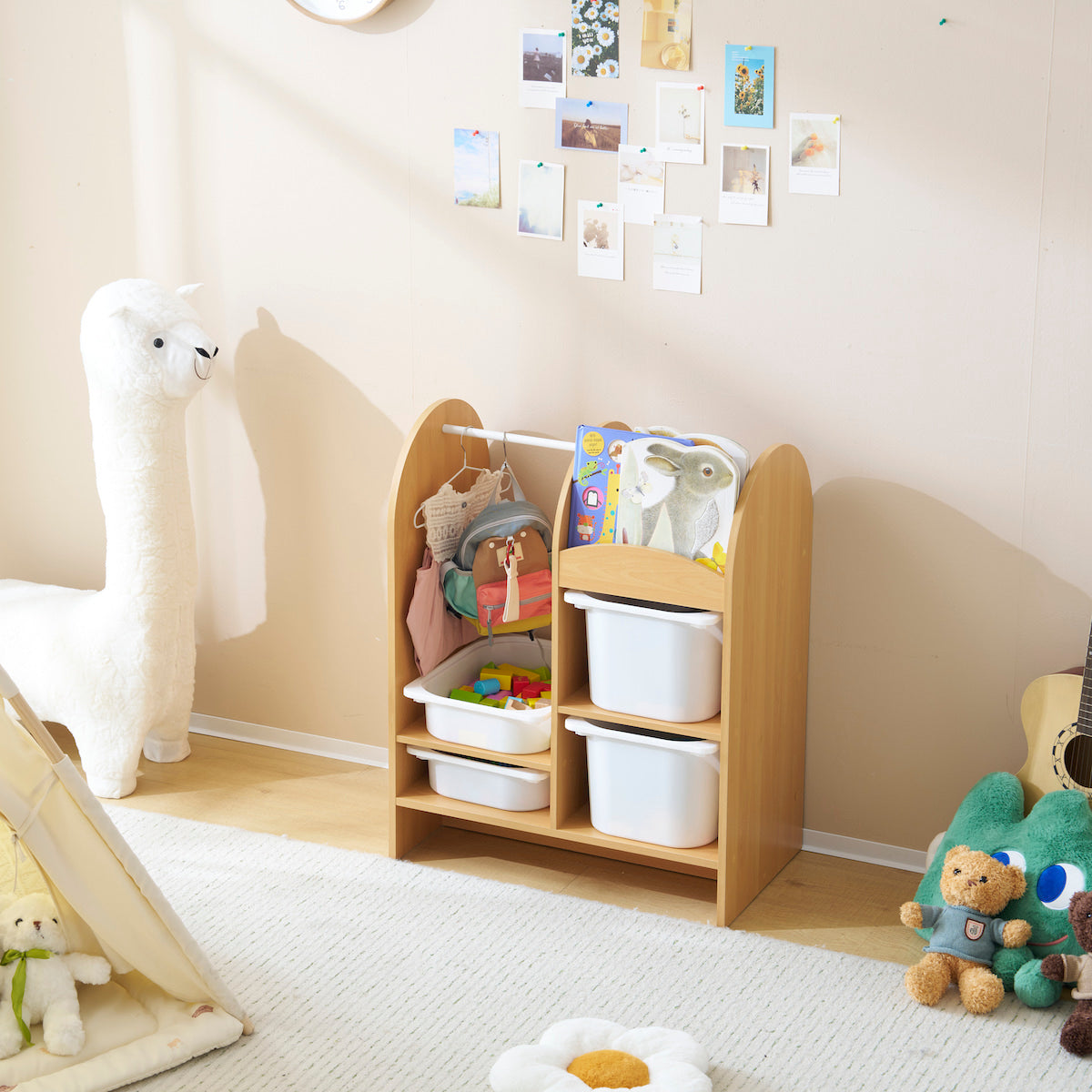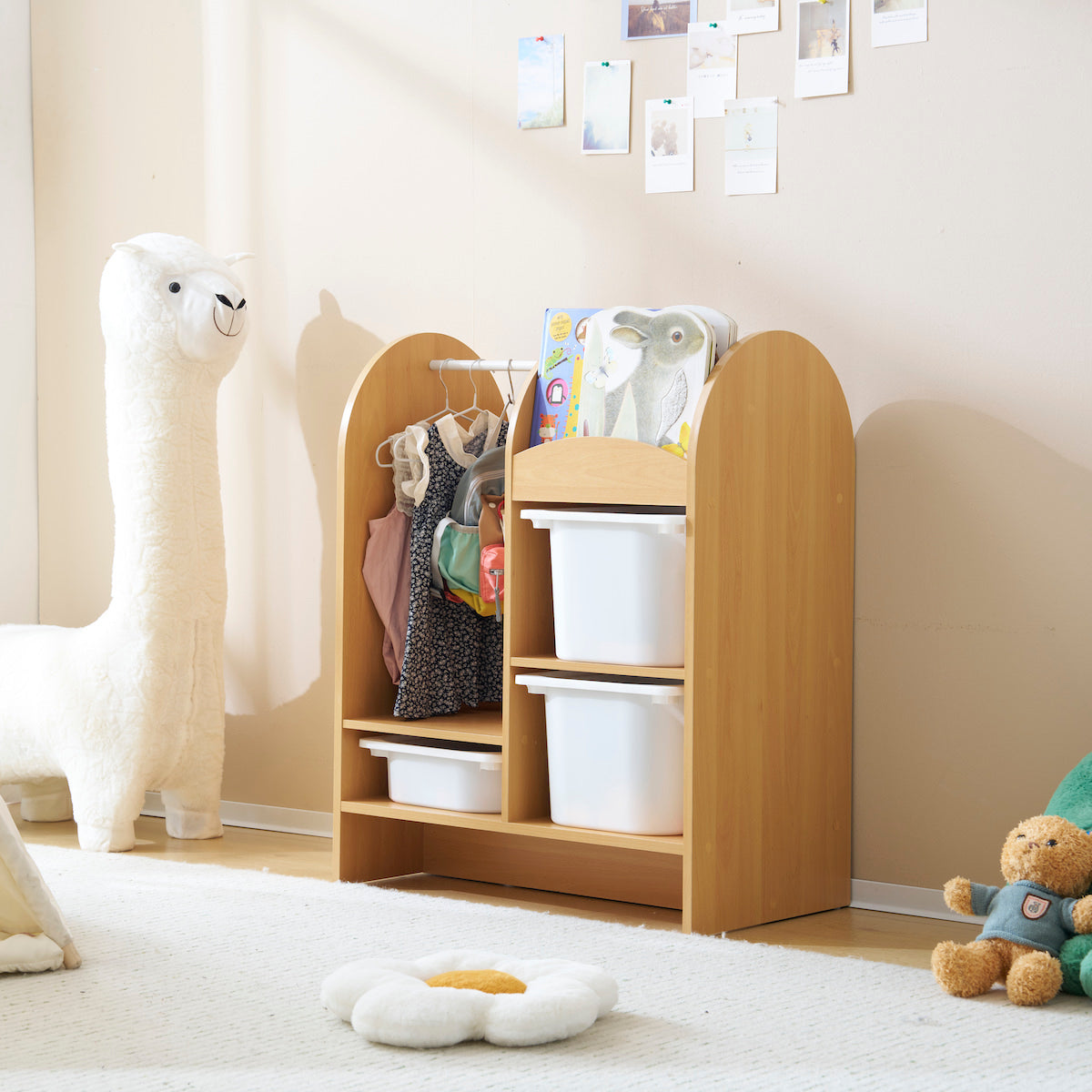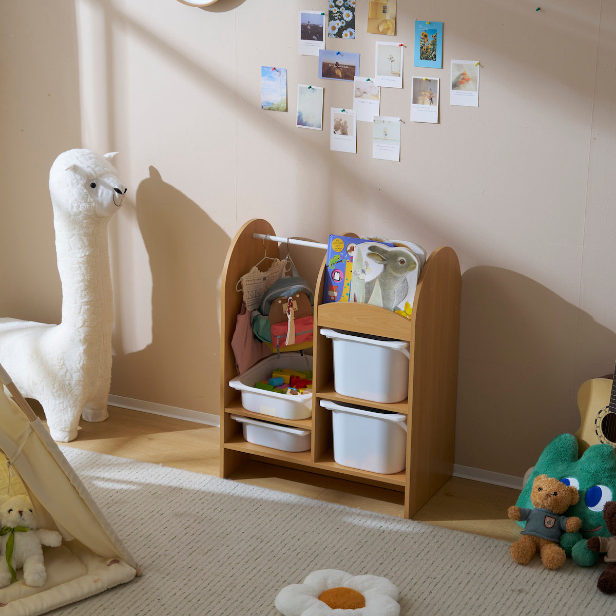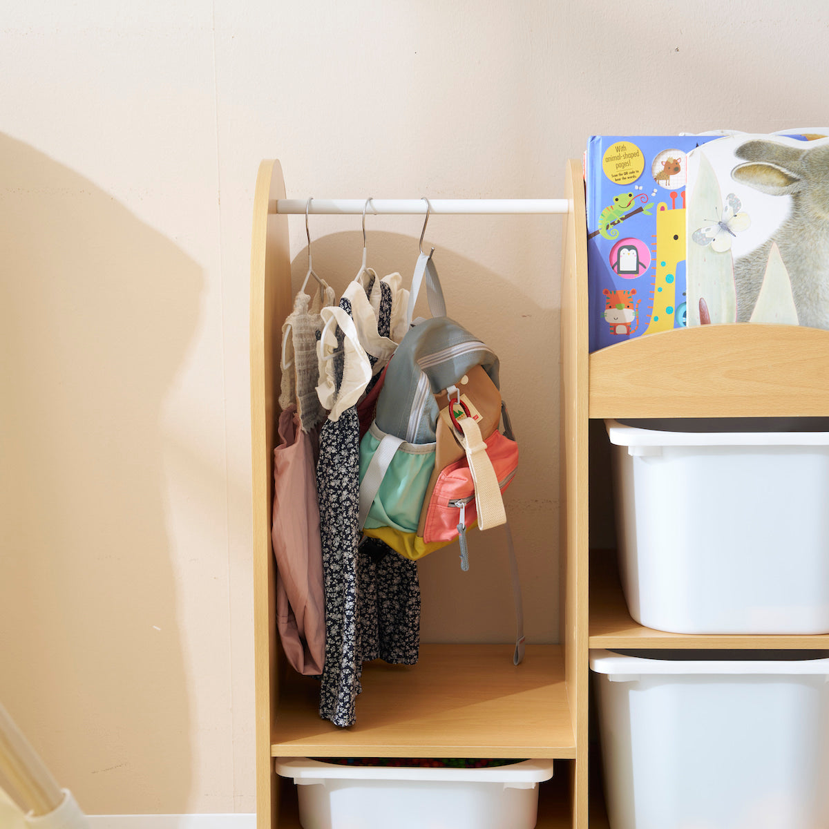 木製おもちゃ収納ラックは、子供のための理想的な収納ソリューションです。ナチュラルな木目調のデザインがどんなインテリアにも調和し、温かみのある印象を与えます。多機能収納でおもちゃや本、衣類を整理し、安全設計で小さなお子様も安心して使用できます。耐久性の高いスチール製パイプを使用し、耐荷重は5kg。選べるタイプで絵本ラックやハンガーバー付きの便利な仕様。