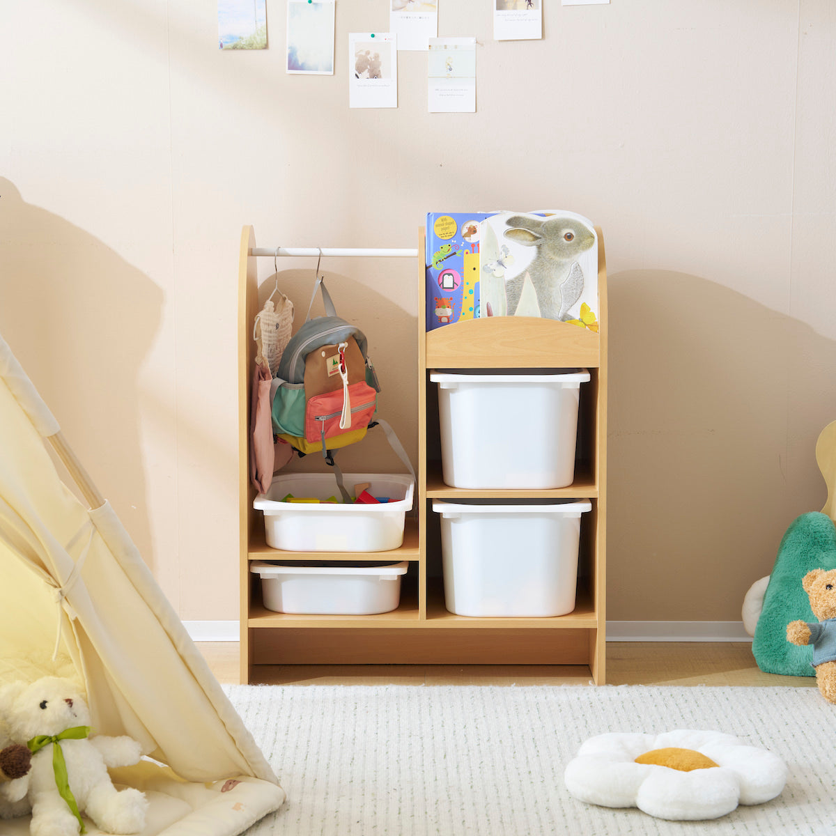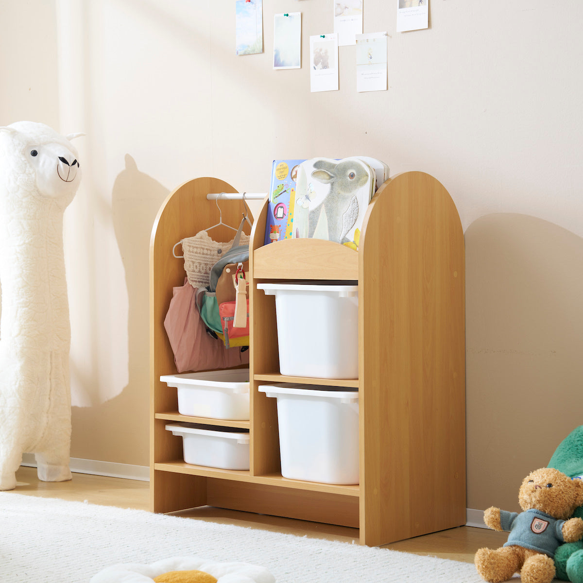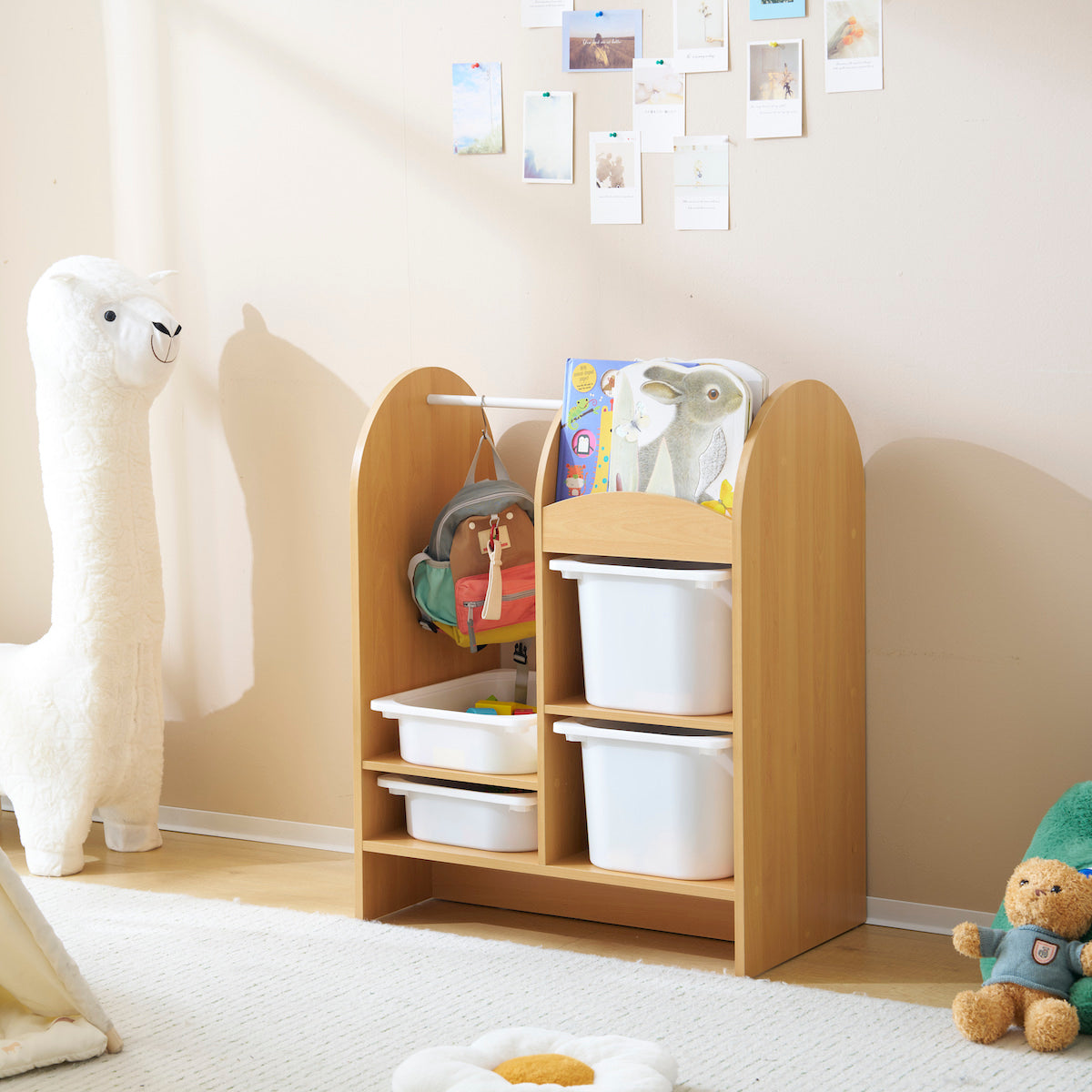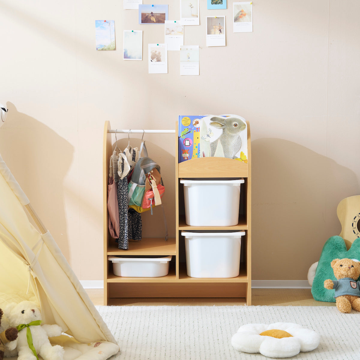 木製おもちゃ収納ラックは、子供のための理想的な収納ソリューションです。ナチュラルな木目調のデザインがどんなインテリアにも調和し、温かみのある印象を与えます。多機能収納でおもちゃや本、衣類を整理し、安全設計で小さなお子様も安心して使用できます。耐久性の高いスチール製パイプを使用し、耐荷重は5kg。選べるタイプで絵本ラックやハンガーバー付きの便利な仕様。