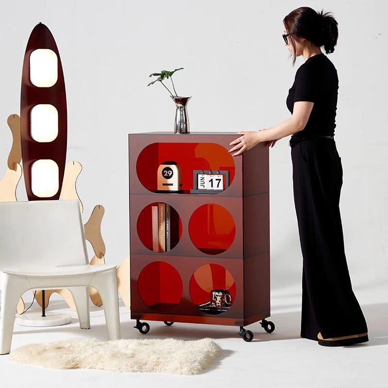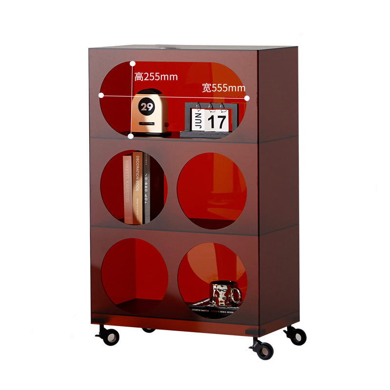 キャスター付きサイドボードは、スタイリッシュで機能的なデザインが特徴です。コンパクトなサイズでどんな部屋にもフィットし、楕円形と円形の収納スペースで多様なアイテムを整理整頓できます。高品質なアクリル素材を使用し、透光性・加工性・軽量性に優れ、長期間使用しても黄ばまず無毒・無臭です。全方向に移動可能なキャスターとワンタッチブレーキ機能で、移動が簡単。組み立ても簡単で環境に優しい設計が魅力です。リビングや書斎での本や雑貨の収納に最適で、インテリアにおしゃれなアクセントを加えます。