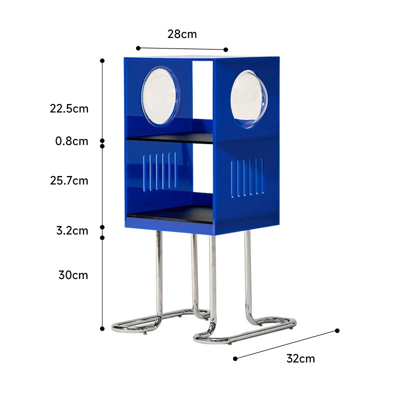 ミニロボットサイドテーブルは、ユニークで遊び心あふれるデザインが特徴のインテリアアイテムです。鮮やかなブルーのボディと透明なドーム型ウィンドウが、どんな空間にも個性をプラスします。幅28cm、奥行32cm、高さ79cmのコンパクトサイズながら、優れた収納力を持ち、ソファ横や寝室のナイトテーブルとしても最適です。8mm厚の高品質アクリル素材を使用し、透明感と耐久性に優れ、ガラスの10倍以上の耐久性を持ちます。透過率92%で明るい光沢を保ち、長期間美しさを維持します。調節可能なアジャスター付きで、設置場所に合わせて高さを調整可能。日常生活をより楽しくするこのアイテムは、機能性とデザイン性を兼ね備えています。