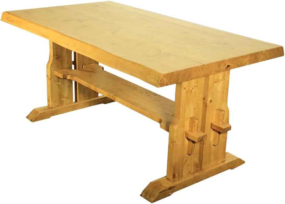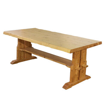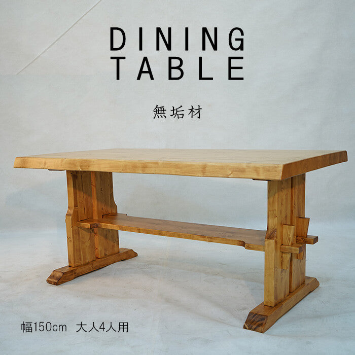 カントリー無垢材ダイニングテーブルは、北欧パイン材を使用した無垢材の魅力を最大限に引き出したデザインで、温かみのあるヴィンテージ感が特徴です。自然な木目が美しく、どんなインテリアにもマッチします。パイン材の6cm厚の天板には「なぐり加工」が施され、重厚感と耐久性を兼ね備えています。環境に優しい水性塗料を使用し、安心してお使いいただけます。サイズは幅150cmと180cmの2タイプから選べ、収納スペースもあり実用的です。F☆☆☆☆ランク取得で安全性も抜群です。