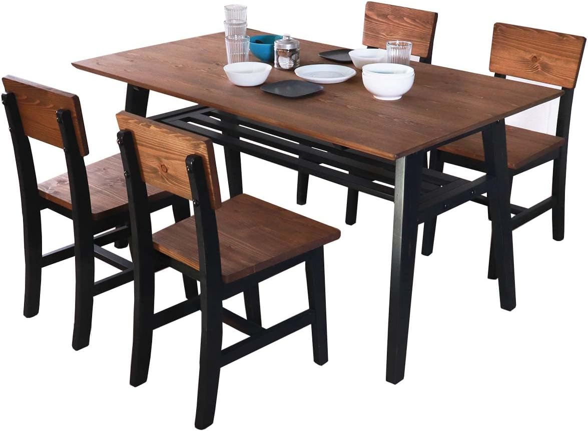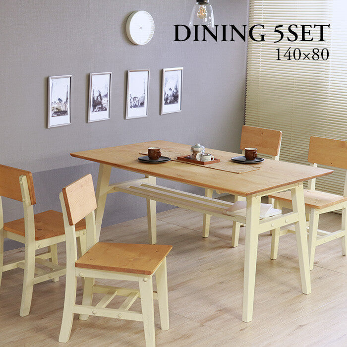 ヴィンテージ調パイン材無垢天然オイル塗装ダイニング5点セット