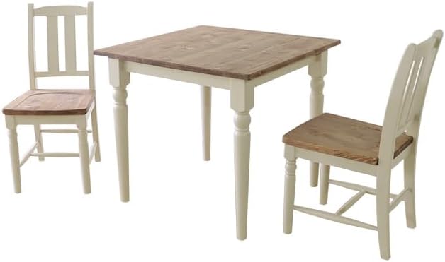 フレンチカントリーパイン材無垢天然オイル塗装ダイニング3点セットは、北欧パインの無垢材を使用し、フレンチカントリースタイルを取り入れたクラシカルでエレガントなデザインが特徴です。コンパクトな80×80cmサイズのテーブルとチェア2脚のセットは、2人用に最適。ドイツのOSMO社の天然オイルで仕上げられたこのセットは、木材の自然な美しさを引き出し、どんなインテリアにもマッチします。安全性も高く、ホルムアルデヒドの放出量が少ないF☆☆☆☆ランクで、安心して使用可能です。
