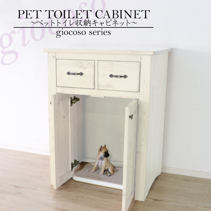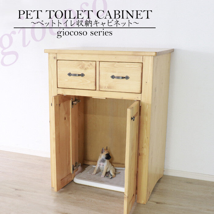 カントリーパイン材無垢ペットトイレ収納キャビネット