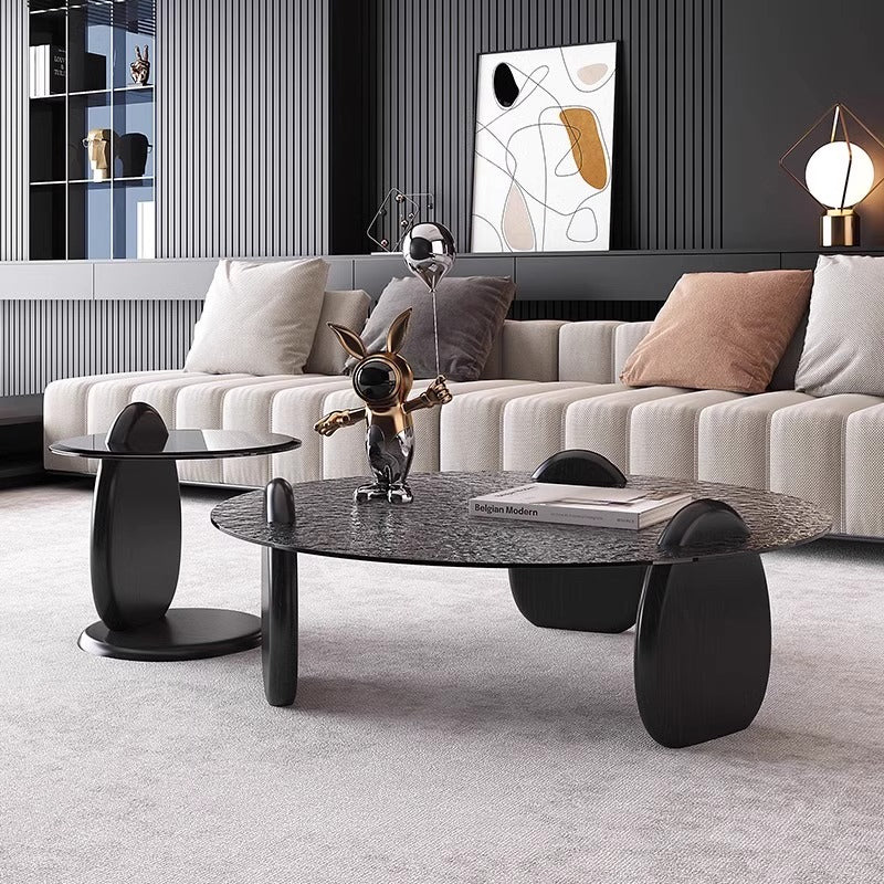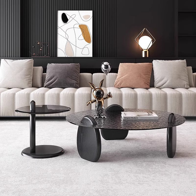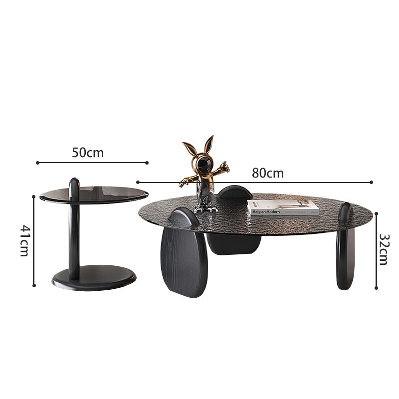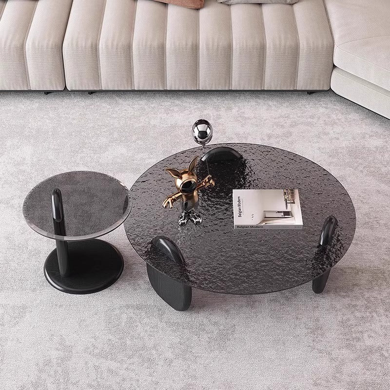 リップルコンビネーションテーブルは、エレガントでモダンなデザインが特徴のテーブルセットです。波模様の強化ガラスを使用し、耐圧強度と耐温差性能が高く、安全性に優れています。異なる高さの組み合わせにより、空間に奥行きと立体感を演出します。環境に配慮した塗装板材を使用し、リビングルームに洗練された個性を加えます。サイズはコーヒーテーブルが直径80cmまたは90cm、高さ32cm、サイドテーブルが直径50cm、高さ41cmです。