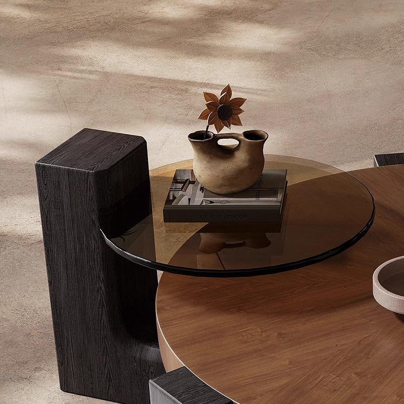 ビンテージ風センターテーブルセットは、北米産スモークウッドを使用した高品質なデザインが特徴です。高温焼成加工により日焼け防止や防虫・防湿性に優れ、耐久性が抜群です。大きなテーブルと小さなガラステーブルの組み合わせで立体感のある空間を演出し、どんなインテリアにもマッチします。強化ガラスを使用し、耐傷性・耐摩耗性にも優れています。リビングルームに温かさとエネルギーをもたらし、シンプルで洗練された空間を作り出します。