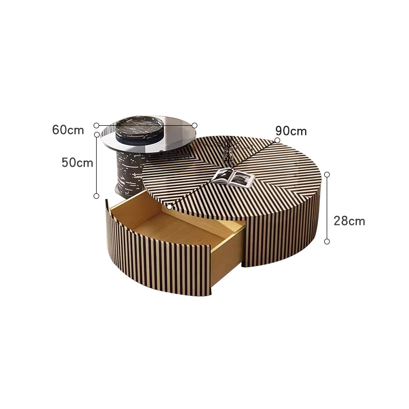 クロスシェイプコンビネーションテーブルは、モダンでクラシックなデザインが特徴の多機能テーブルです。高品質な強化ガラスと環境に優しい木材を使用し、耐熱性と耐久性を兼ね備えています。丸型と四角型のユニークな形状がインテリアにアクセントを加え、大型の引き出しで小物をすっきり収納可能。高さ28cm、幅80cmまたは90cmのバリエーションがあり、ローテーブルとハイテーブルのセットで空間に異なる高さのリズムを生み出します。友人を招いてのティータイムやリビングのアクセントとして最適です。