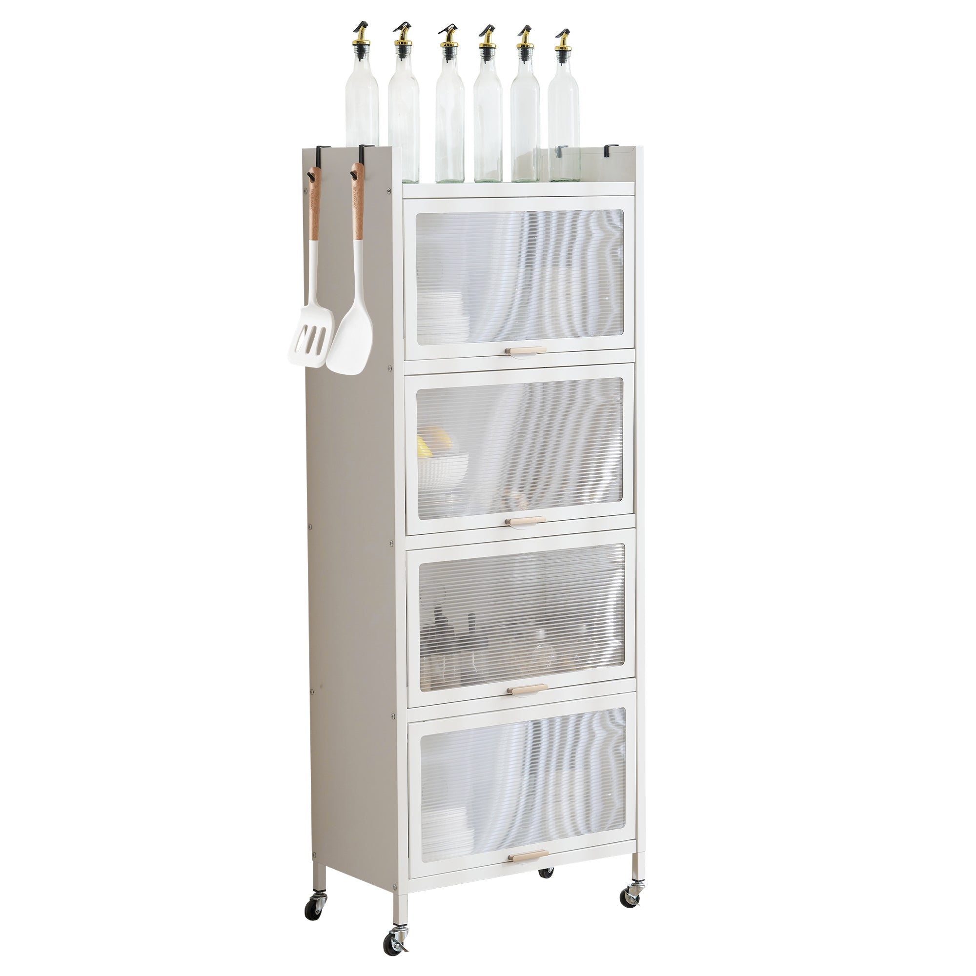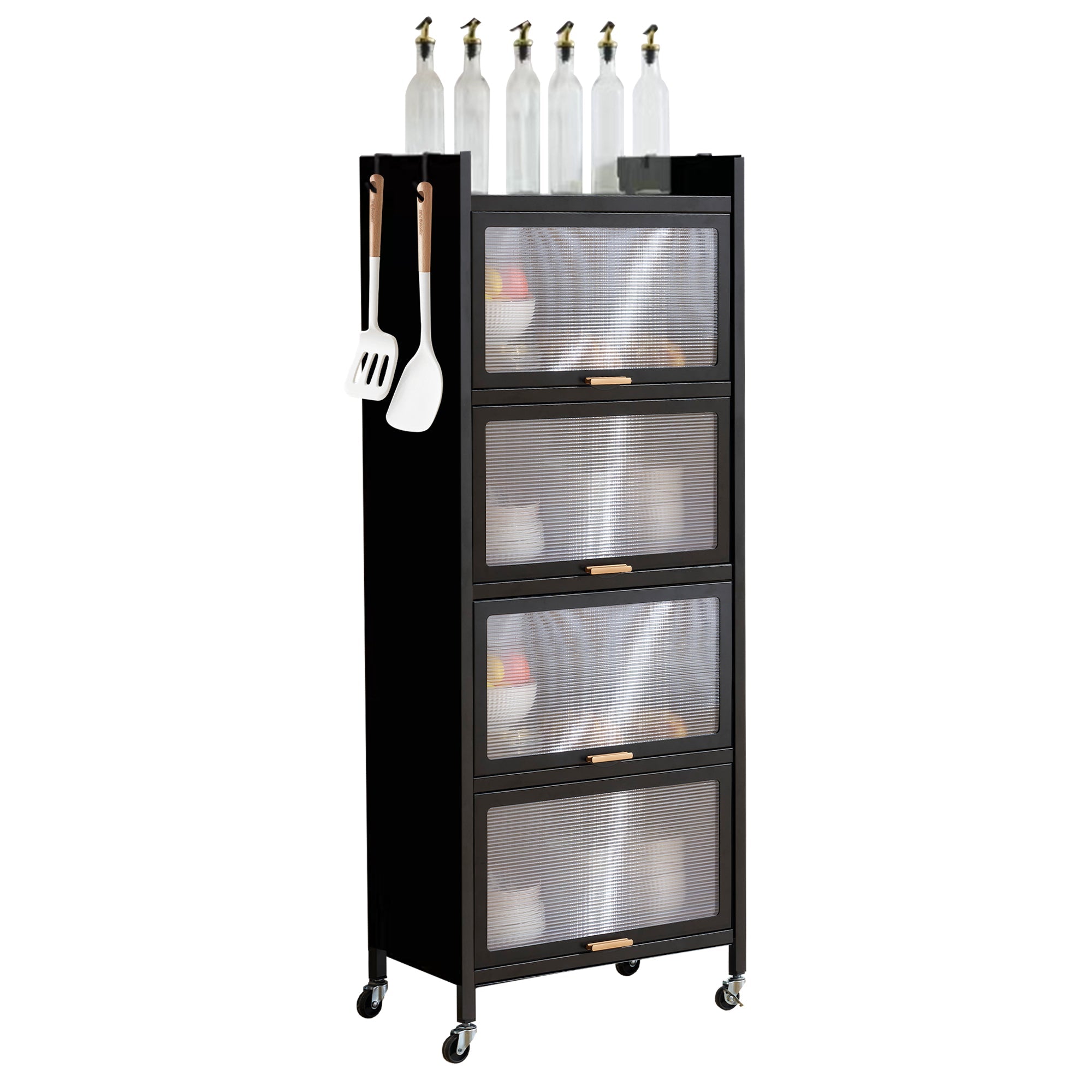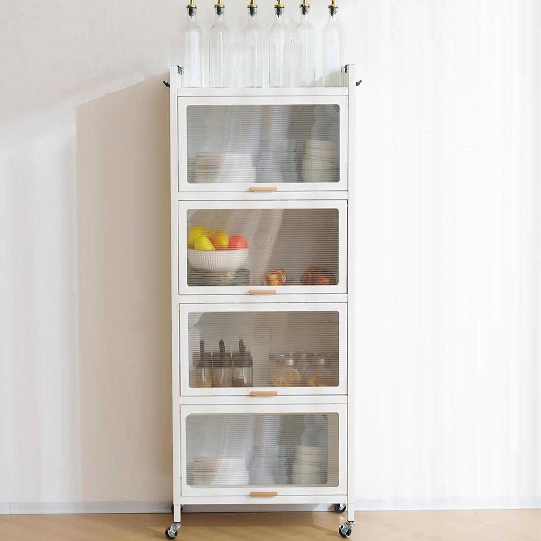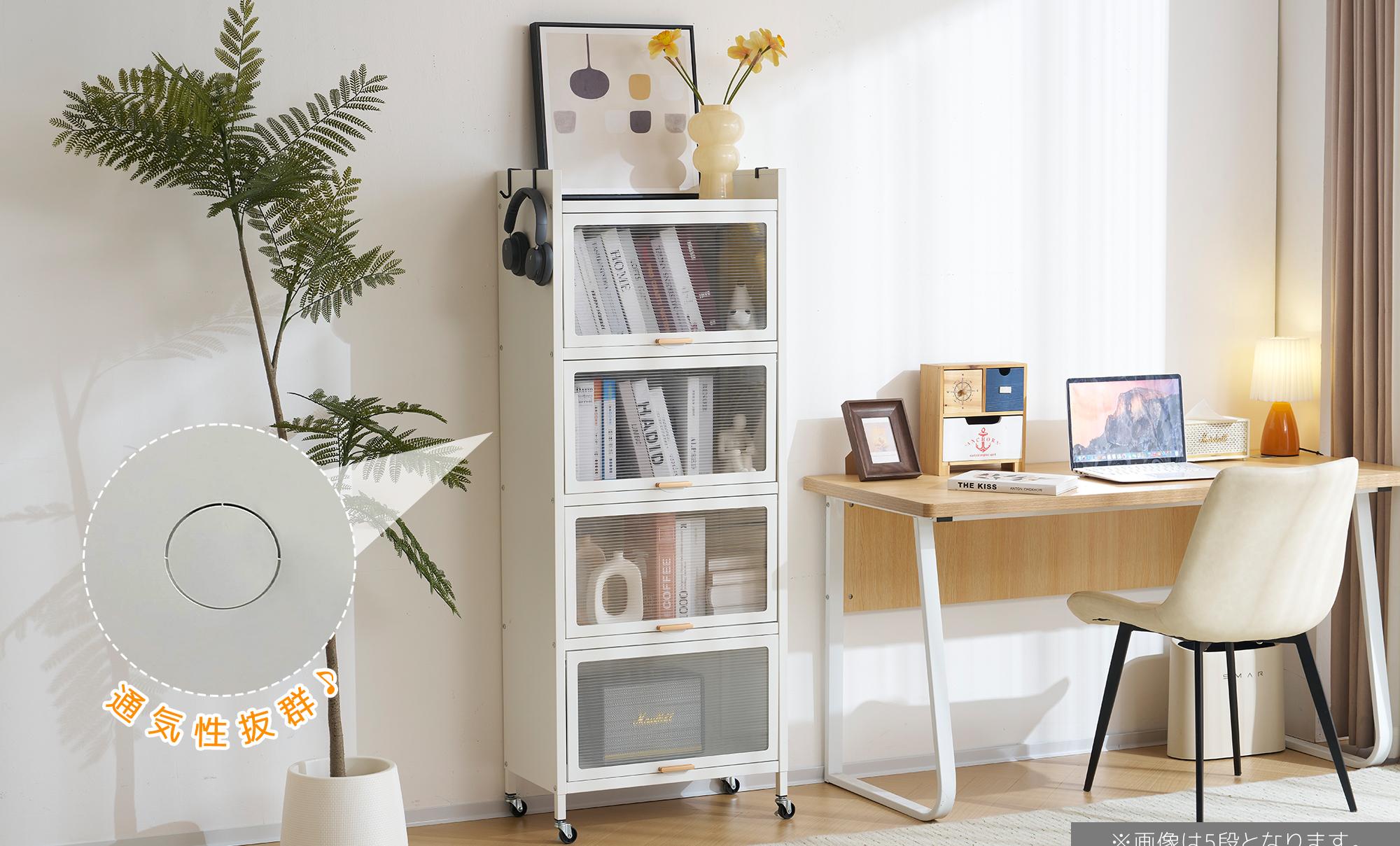 透明扉付ラックは、スタイリッシュで機能的な収納ソリューションを提供します。多用途デザインで、食器棚や本棚として使用可能。5段の大容量収納で書籍や家電を効率的に収納。炭素鋼素材で耐久性が高く、透明扉で中身が見えるため便利。通気性に優れ、360°回転ローラーで移動も簡単。フック付きで小物も掛けられ、落下防止デザインで安全性も確保。幅57cm、奥行き32cm、高さは選べる3サイズで、省スペースながら収納力抜群です。