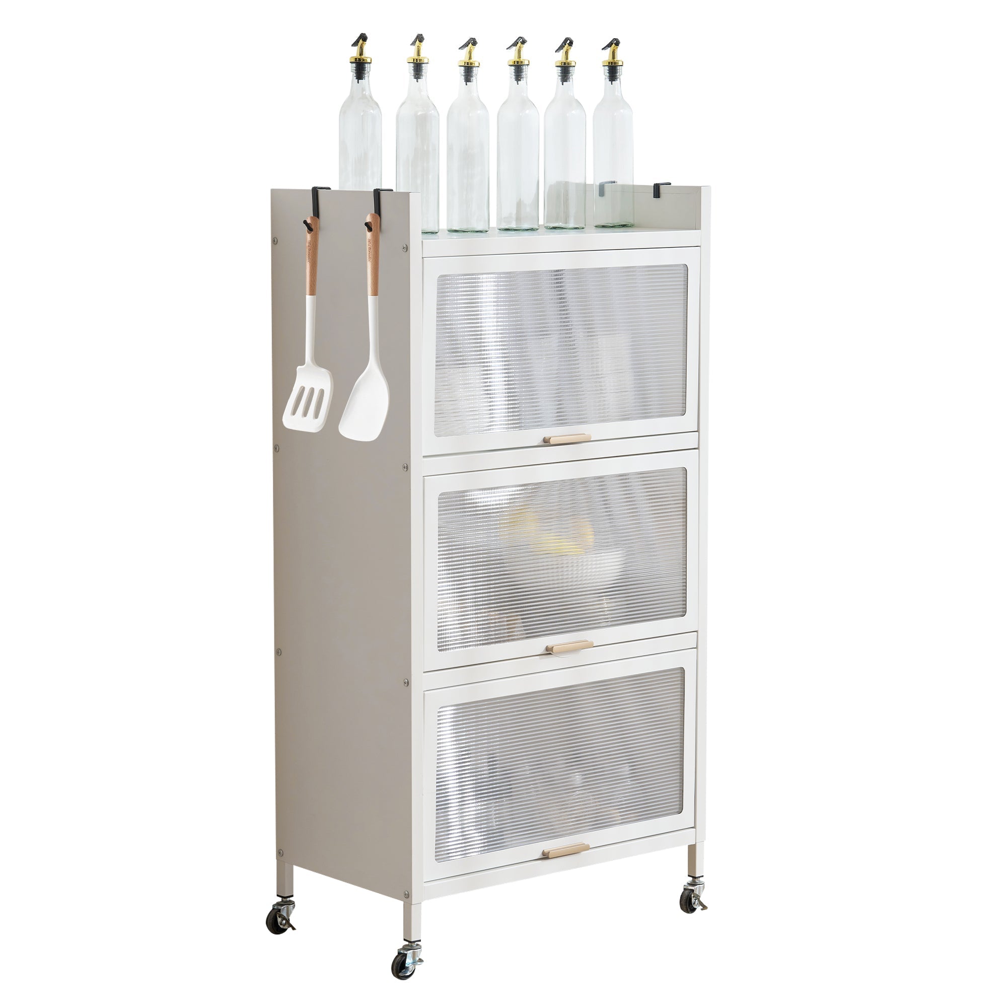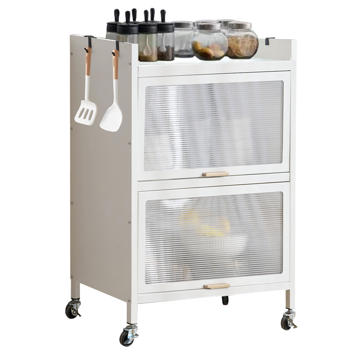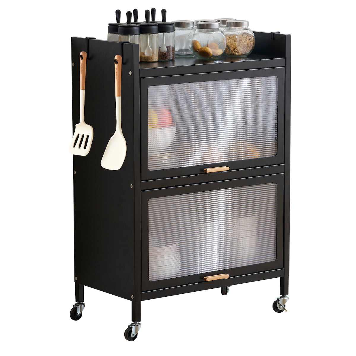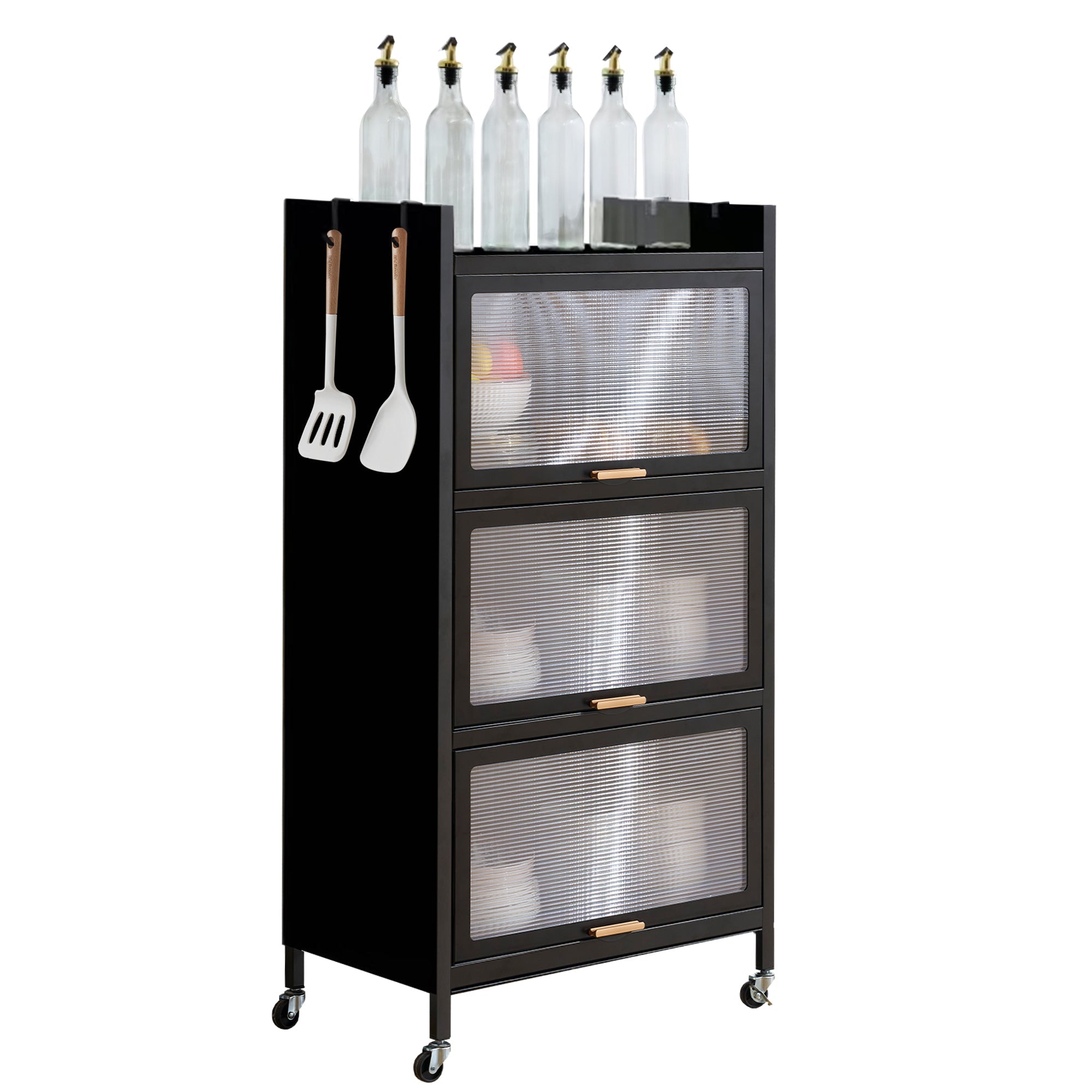 透明扉付ラックは、スタイリッシュで機能的な収納ソリューションを提供します。多用途デザインで、食器棚や本棚として使用可能。5段の大容量収納で書籍や家電を効率的に収納。炭素鋼素材で耐久性が高く、透明扉で中身が見えるため便利。通気性に優れ、360°回転ローラーで移動も簡単。フック付きで小物も掛けられ、落下防止デザインで安全性も確保。幅57cm、奥行き32cm、高さは選べる3サイズで、省スペースながら収納力抜群です。