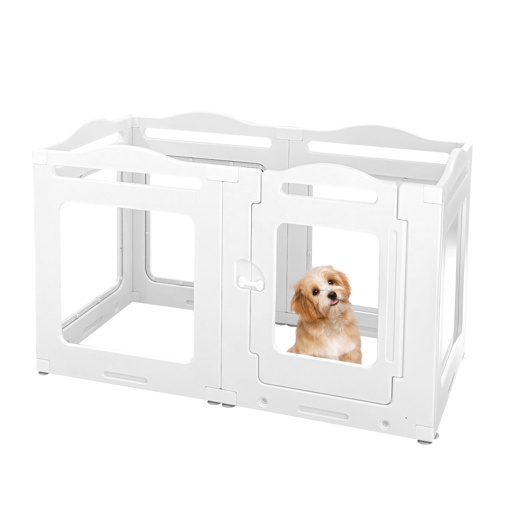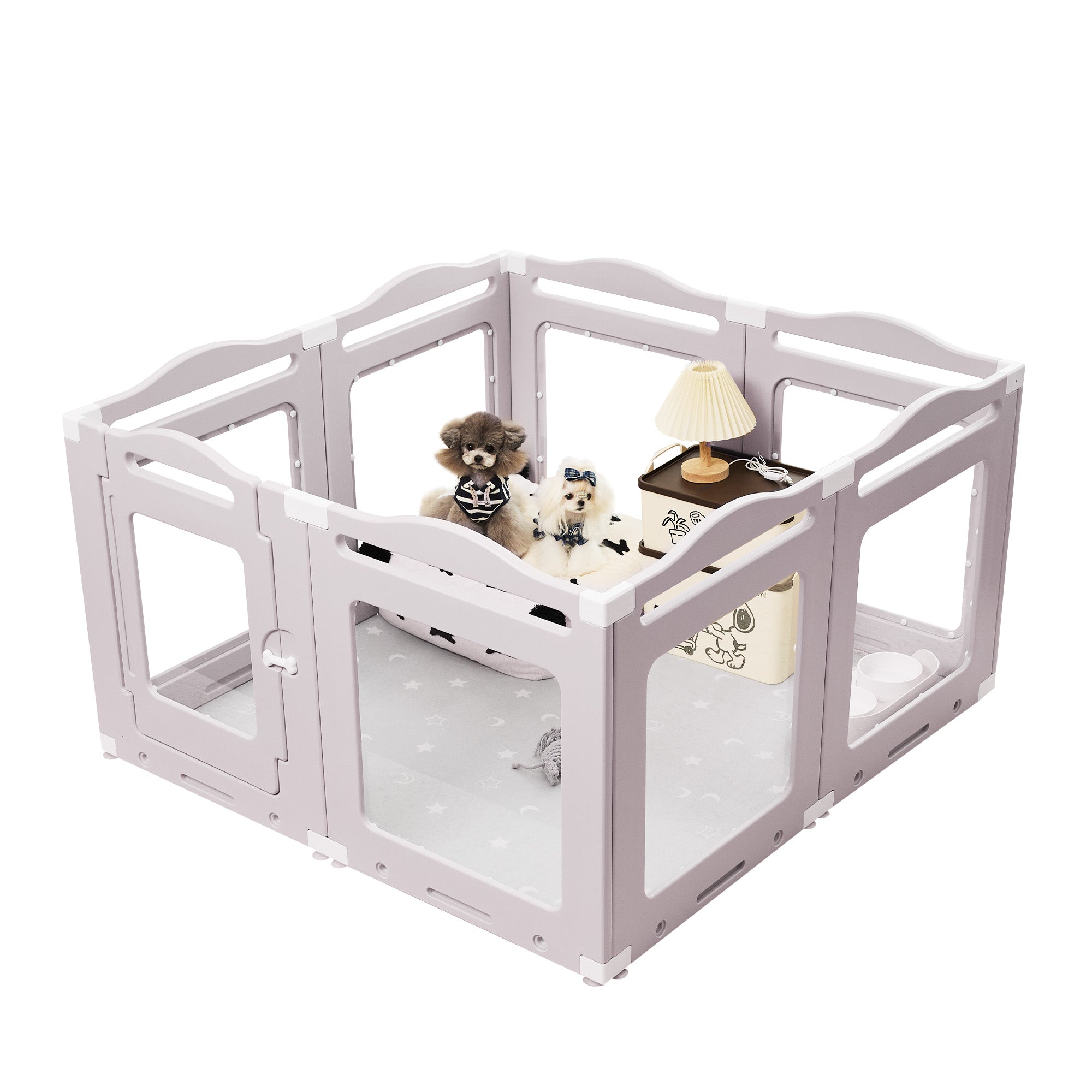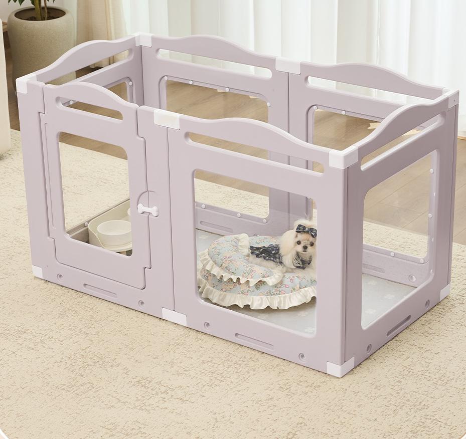 HDPE製全透明ペットサークルは、ペットの安全と快適さを最優先に考えたデザインが特徴です。高密度ポリエチレン素材を使用し、環境に優しく、耐久性と耐衝撃性に優れています。水洗い可能でお手入れも簡単。高さ75cmのパネルは、飼い主が出入りしやすく、ペットの状態をいつでもチェック可能。仕切り板付きで空間分離も可能。360°全透明でペットの様子をどこからでも確認でき、ストレスを軽減します。小型犬や子犬に最適なサイズ展開で、インテリアに合わせて自由にレイアウト可能です。